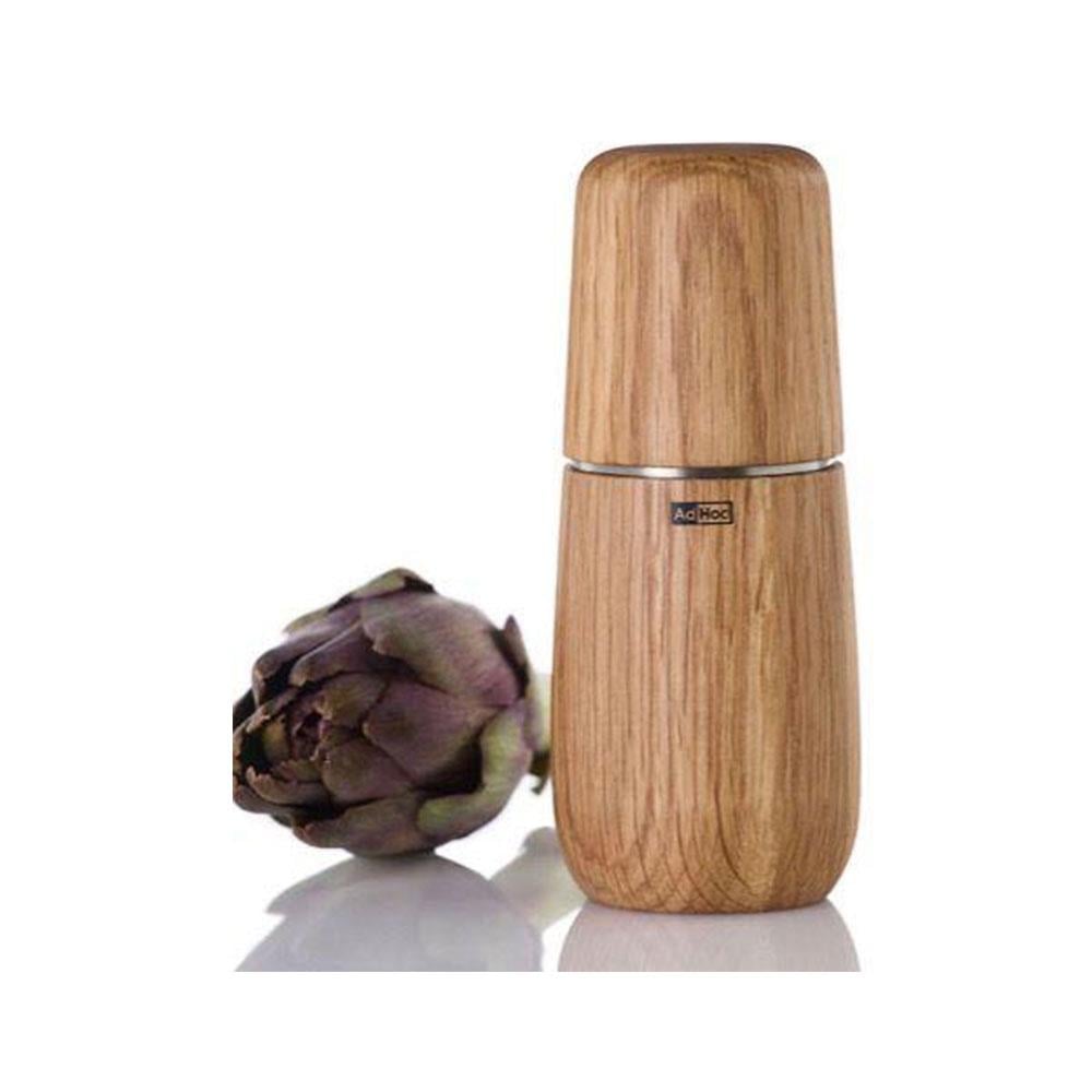 AdHoc marka yeni karabiber ve tuz değirmeni Yono kesinlikle çekici bir tasarıma sahiptir. Hafif yuvarlatılmış şekli organik etki eder ve böylece ev ürünlerinde bile daha fazla doğallık trendi sunar. Bu tasarım sayesinde mutfakta veya masada ince baharat sağlamak için memnuniyetle dokunulur – gerçek bir el okşayıcı! Aynı zamanda özel şekli Yono birinci sınıf değirmeninin sunulduğu üç doğal ahşap çeşidinin dokusunu mükemmel bir şekilde öne çıkarır. Akasya ağacının yanında açık veya koyu yağlı meşe seçeneği mevcuttur.