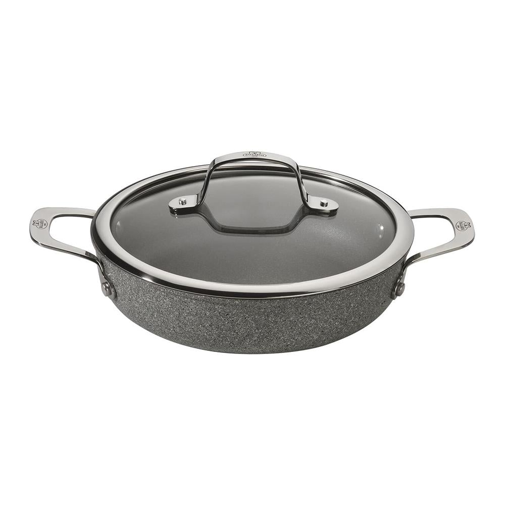 Cam kapaklı 24 cm'lik BALLARINI Salina pilav tenceresinin çekici granit görünümü, bu servis tavasınının sofralarınıza renk katmasını sağlar.