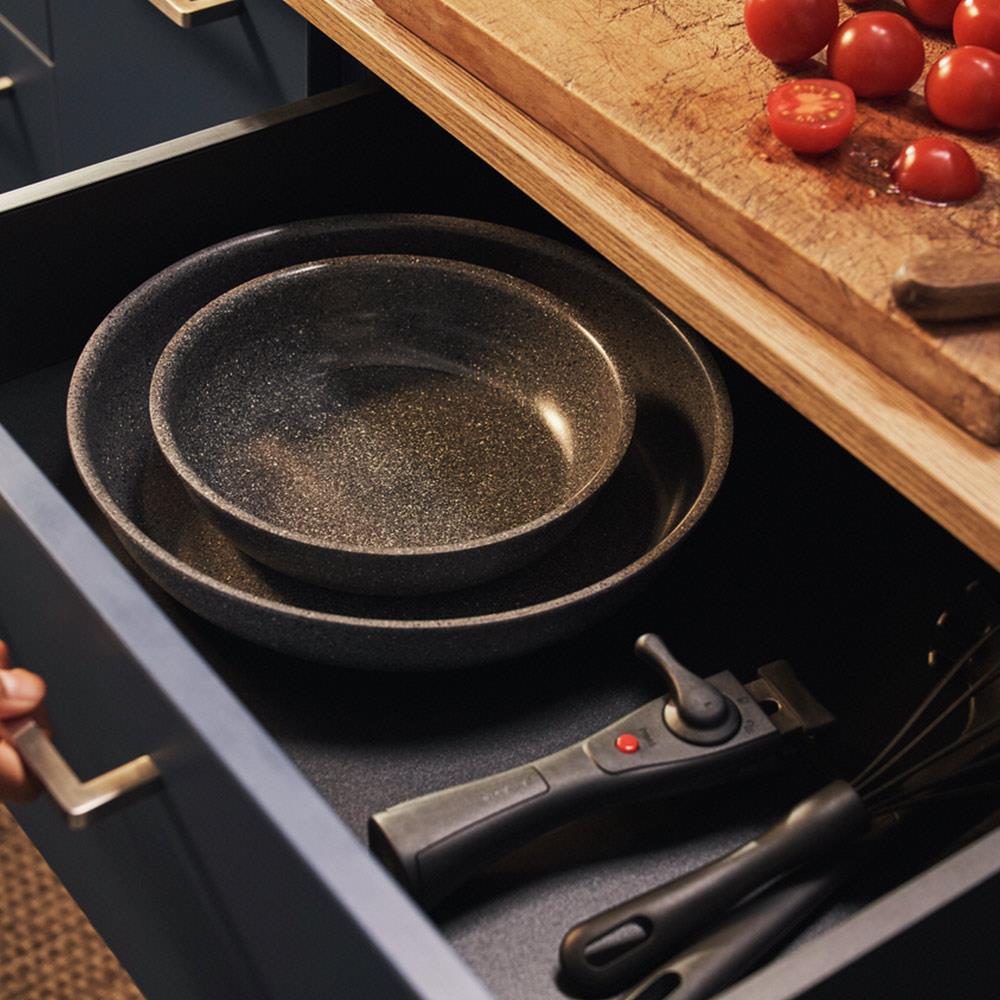 Torre yalnızca fonksiyonel değil, aynı zamanda pratiktir. Tava ve tencere saplarının çıkarılabilir olması sayesinde pişirme gereçlerinizi yerden tasarruf sağlayacak şekilde saklayabilir, mutfağınızda hem düzeni koruyabilir hem de dolap alanından tasarruf edebilirsiniz. Bu tava, tencere ve sap seti, İtalyan mutfağının geleneklerini mutfak organizasyonunuz için gerçek bir yenilikle buluşturur! İtalyan mutfağınızdaki vazgeçilmez yardımcınız!