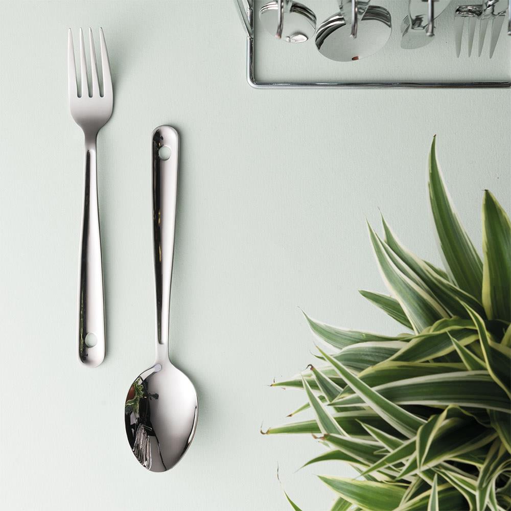 İster başlangıç için temel bir set arıyor olun, ister eski çatal bıçak takımlarınızdan bazılarını değiştirmek istiyor olun, bu 25 parçalı set ile lezzetli bir yemeğin tadını çıkarmak için ihtiyacınız olan çatal bıçak takımına sahip olacağınızdan emin olabilirsiniz. Pratik standı sayesinde Alteo setini tezgahınızın üzerinde veya mutfak dolabınızda kolayca saklayabilirsiniz. Kullanışlı saklama rafı