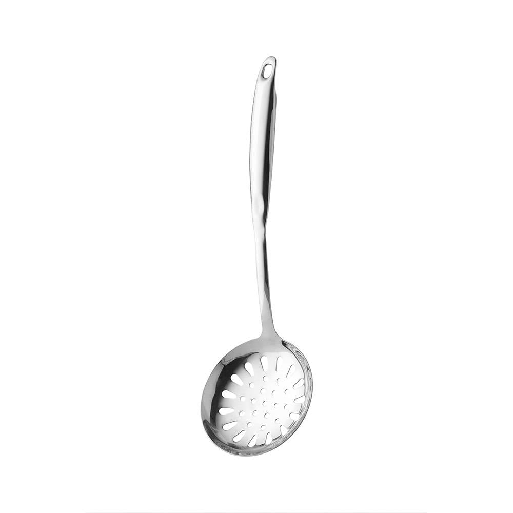 Bu paslanmaz çelik kevgir, yiyecekleri kolayca süzmenize ve sıcak yağı veya kaynayan sıvıları boşaltmanıza yardımcı olur. Kullanışlı asma deliği sayesinde saklaması kolaydır. Rahat bir tutuş için uzun ergonomik sap