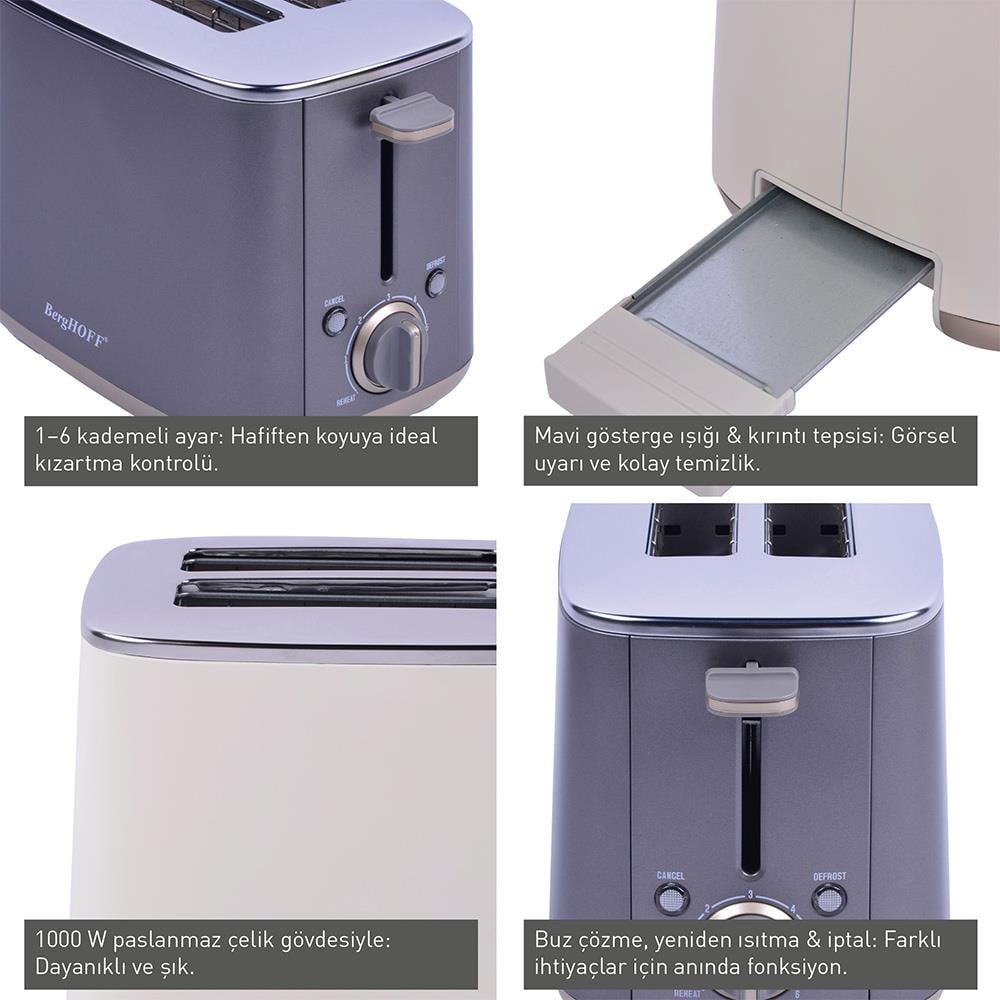 Berghoff Gem Ekmek Kızartma Makinesi 2 Dilim Vanilya (BE-7950701)