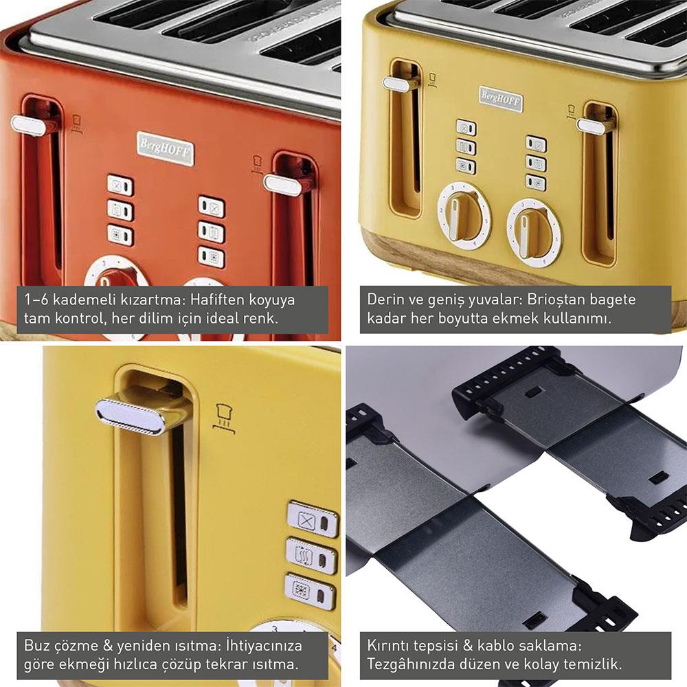 Güne sıcacık ekmeklerle başlayın! Paslanmaz çelik gövdesi, çift kontrol paneli ve çok yönlü fonksiyonlarıyla hem şıklığı hem işlevselliği mutfağınıza taşır. Ayarlanabilir ısı seviyesiyle dilediğiniz kızarıklıkta ekmekler hazırlarken, buz çözme ve yeniden ısıtma gibi akıllı özelliklerle konforu artırır.