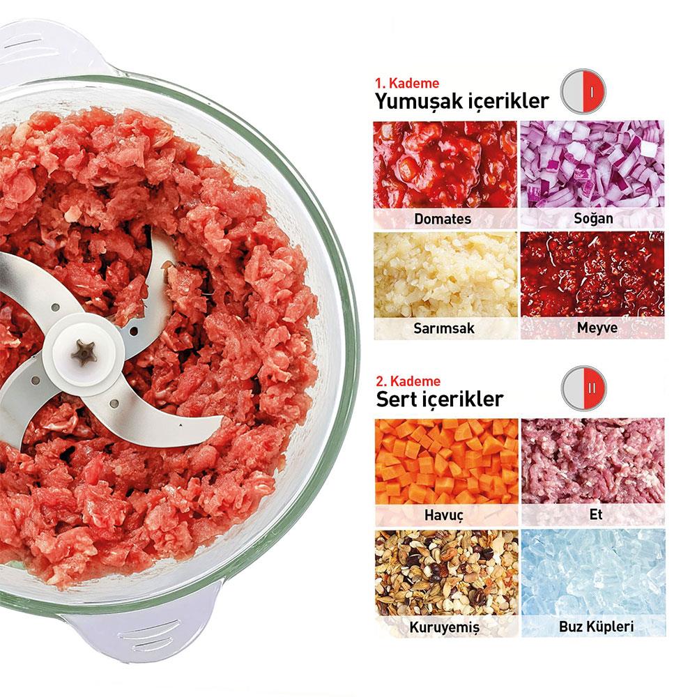 2 L cam doğrayıcı hazne: Geniş kapasiteli kullanım.