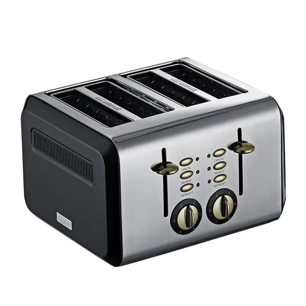 Geniş aileler ve yoğun kahvaltı sofraları için ideal! Berghoff’un parlak gümüş ve siyah gövdesine gold detaylarla şıklık katılmış bu modeli, 4 dilim ekmek kapasitesi ve 1640–1960W arası güçlü performansıyla mutfakta hız kazandırır.