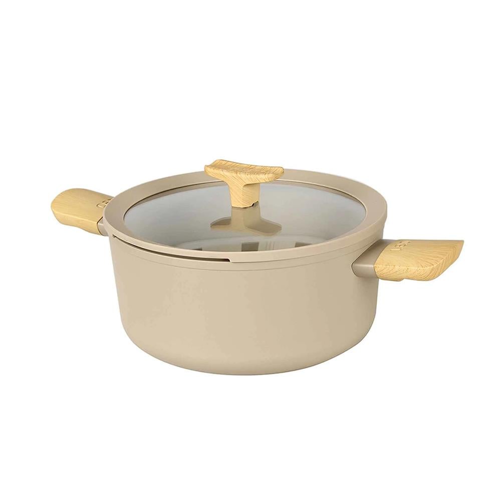 Bu %100 geri dönüştürülmüş alüminyum tencerede büyük bir parti ev yapımı çorba veya lezzetli bir güveç hazırlıyorsanız, tencerenin indüksiyon dahil her türlü ocakta hızlı ve eşit, enerji tasarruflu ısı dağılımını takdir edeceğinizden şüpheniz olmasın. Yüksek kaliteli, sürdürülebilir ve sağlıklı seramik yapışmaz kaplama, yiyeceklerin kolay çıkmasını sağlarken, yumuşak dokunuşlu soğuk tutma sapları rahat bir tutuşa ve cam kapağın topuzu da bir kaşık dayama topuzuna sahiptir. Tüm bu lezzetli tatların korunduğundan ve değerli enerjinizi kaybetmediğinizden emin olmak ister misiniz? Kapağı kaldırmak zorunda kalmadan yemeğinize göz kulak olmanızı sağlayan ve gerektiğinde tencerenin içindekileri kolayca süzebilmeniz için bir tahliye deliği ile birlikte gelen şeffaf cam kapağı kullanın