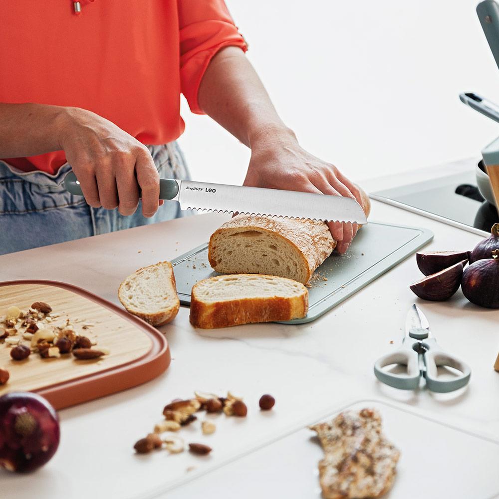 Güne başlamak için bir dilim taze pişmiş ekmeği kim sevmez ki? Çıtır çıtır kabuğu iç kısımdaki daha yumuşak olanı ezmeden kolayca dilimleyebildiğinizden emin olmak için bu ekmek bıçağını alın ve güzel ve eşit dilimler kesin. Parlak yüzeyli sapı ile birlikte bu ekmek bıçağı sadece hoş bir kullanım sağlamakla kalmayacak, aynı zamanda sofra düzeninizi de aydınlatacaktır. En çok sevdiğiniz rengi bile seçebilirsiniz: Spirit veya Slate!
