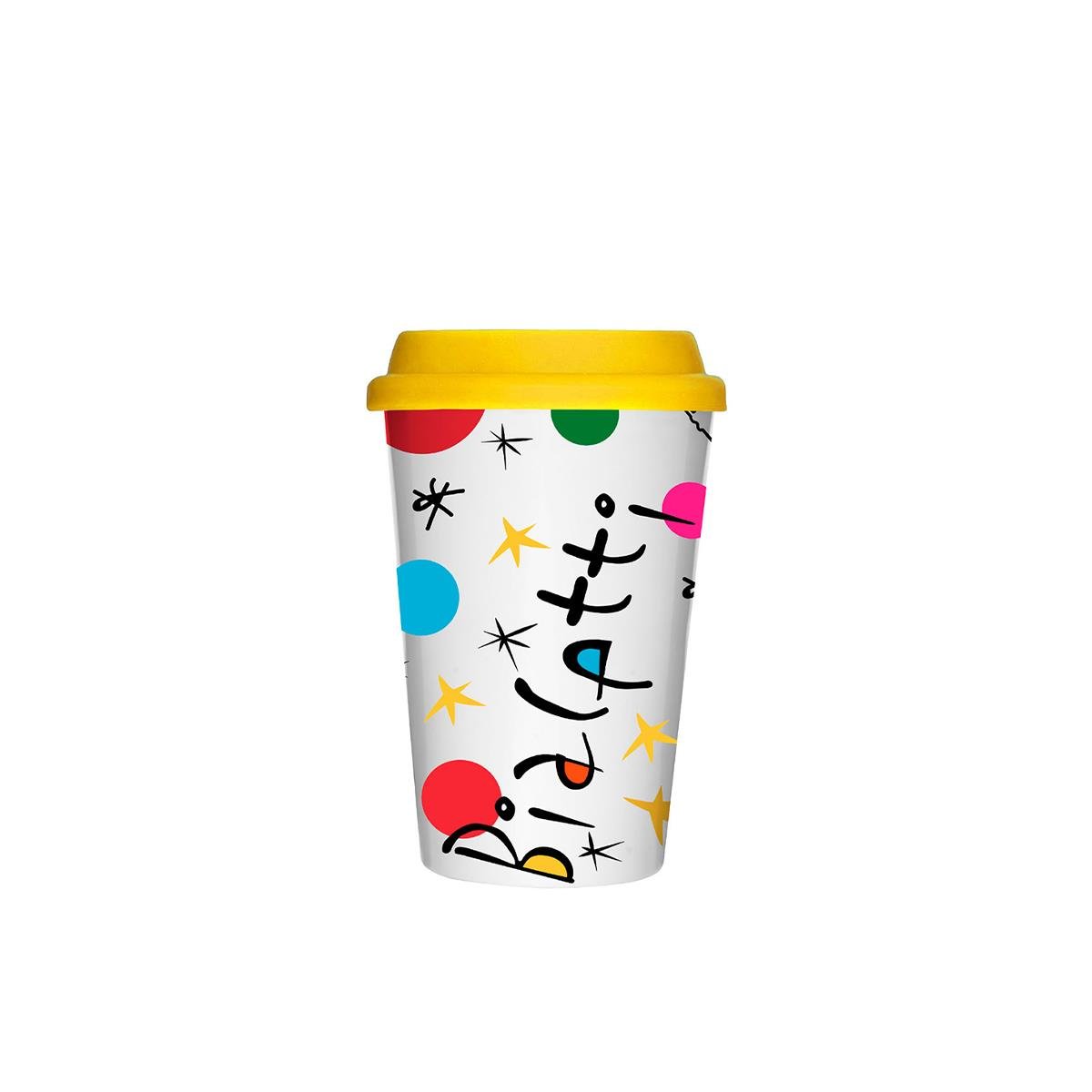 Bialetti Take Away, stil ve pratikliği bir araya getiriyor, seyahat sırasında yanınıza bir kupa götürebilirsiniz. Ünlü Amerikalı sanatçı Joan Miro'nun eseri tasvir edilmiştir. Porselenden üretilmiş olup silikon kapaklıdır. Bulaşık makinesinde yıkanamaz. Rahat ve pratik kullanımı vardır.