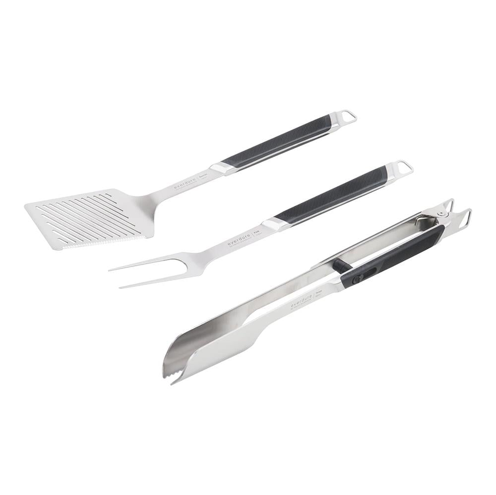 Everdure Çelik Barbekü Aksesuar Seti Large, barbekü deneyiminizi geliştirmek için tasarlanmış yüksek kaliteli bir settir. Bu set, fırçalanmış paslanmaz çelikten üretilmiş olup, korozyona karşı yüksek direnç gösterir ve uzun ömürlü kullanım sağlar. Temizliği kolaydır; el yıkama önerilir. Yumuşak tutma sapı rahat ve güvenli bir tutuş sağlayarak sıcak yiyecekleri tutmanızı kolaylaştırır .