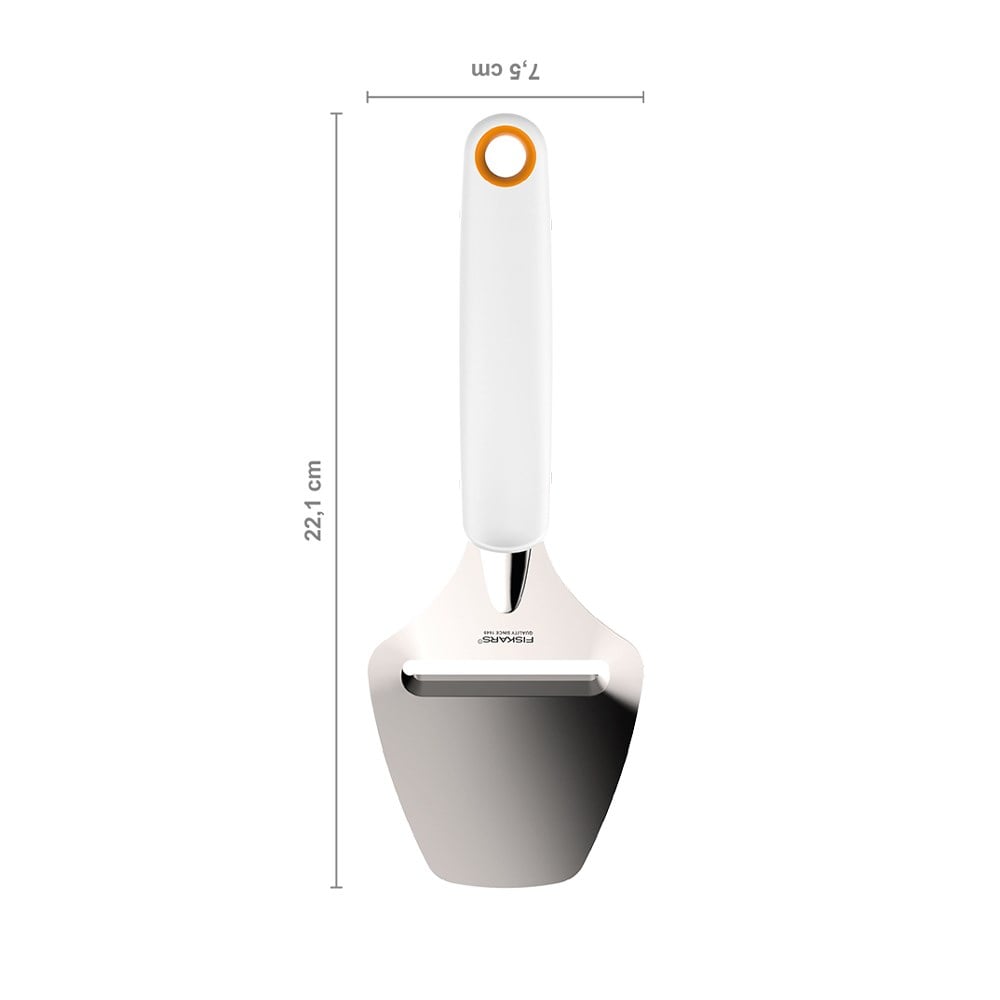 Fiskars sert peynir dilimleyici, özellikle cheddar, parmesan veya kaşar gibi sert yapıdaki peynirleri zahmetsizce dilimlemek için akıllıca tasarlanmıştır. Günlük mutfak işlerinizde pratiklik sağlayan bu araç, peynirlerinizi her seferinde eşit ve ince formda hazırlamanıza imkan tanır.