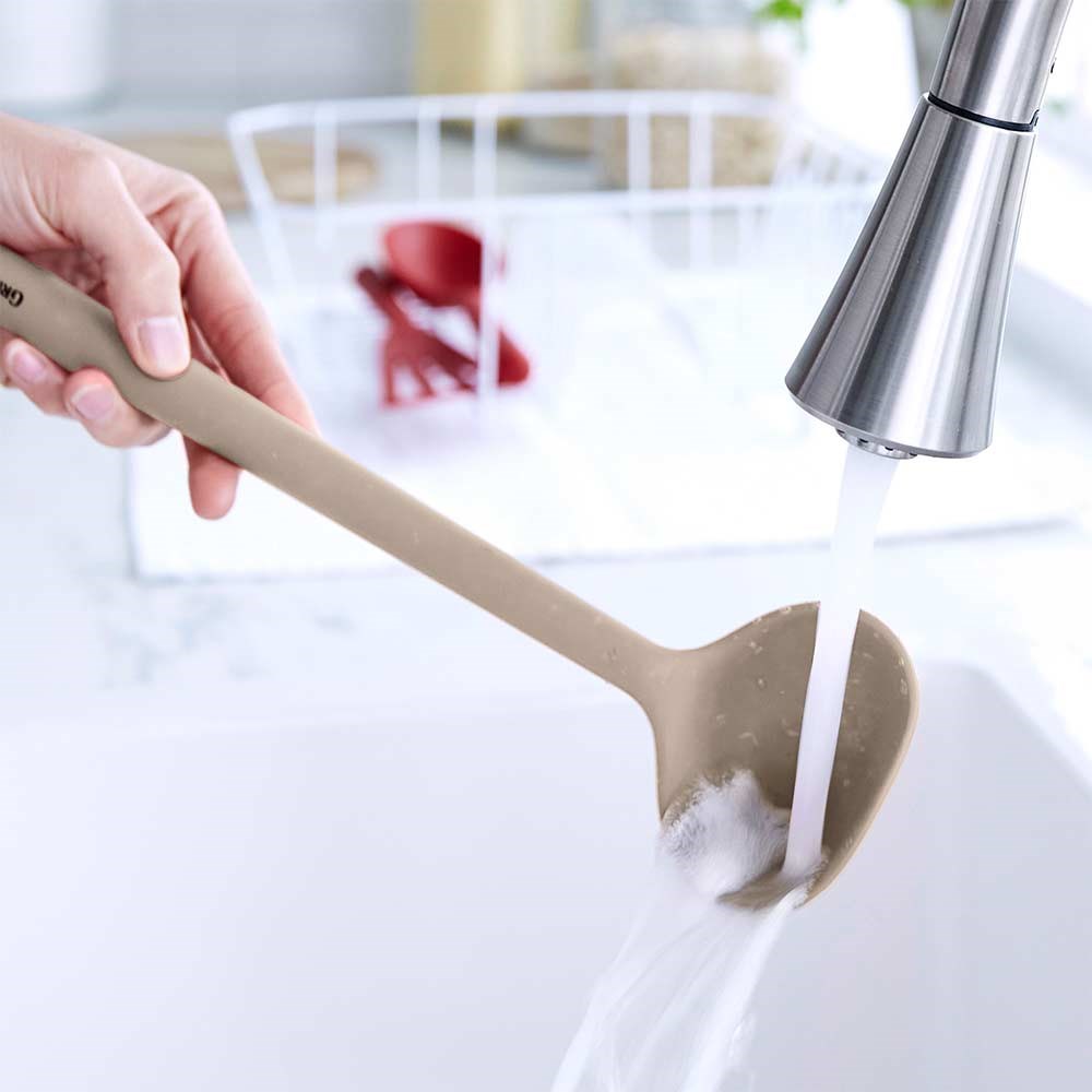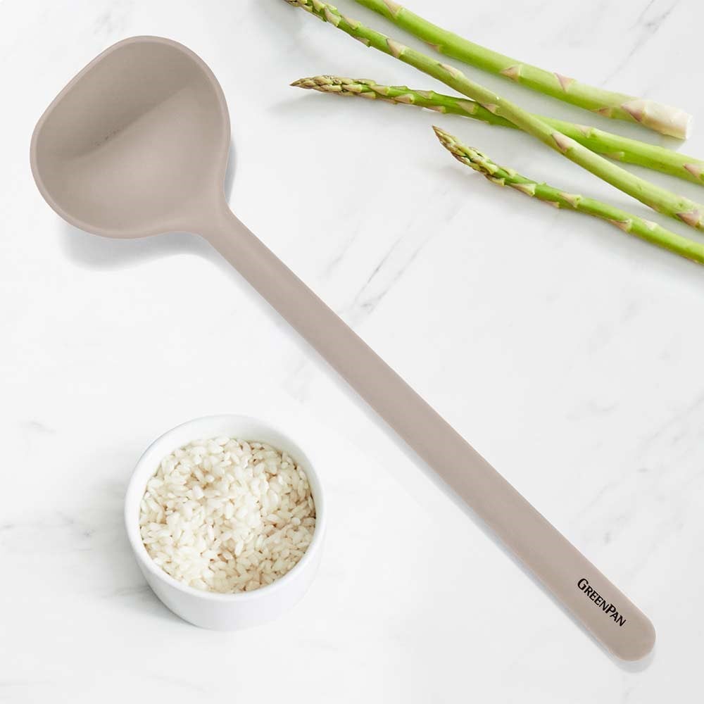 Mutfaktaki servis ve hazırlık süreçlerini profesyonel bir seviyeye taşıyan bu kepçe, çeliğin sağlamlığını gıda dostu silikon dış yüzeyle birleştirir. GreenPan’in sağlıklı mutfak vizyonuna uygun olarak geliştirilen yapısı, tencere tabanına tam uyum sağlayarak servis yapmayı kolaylaştırırken hassas pişirme yüzeylerinizi çizilmelere karşı korur.