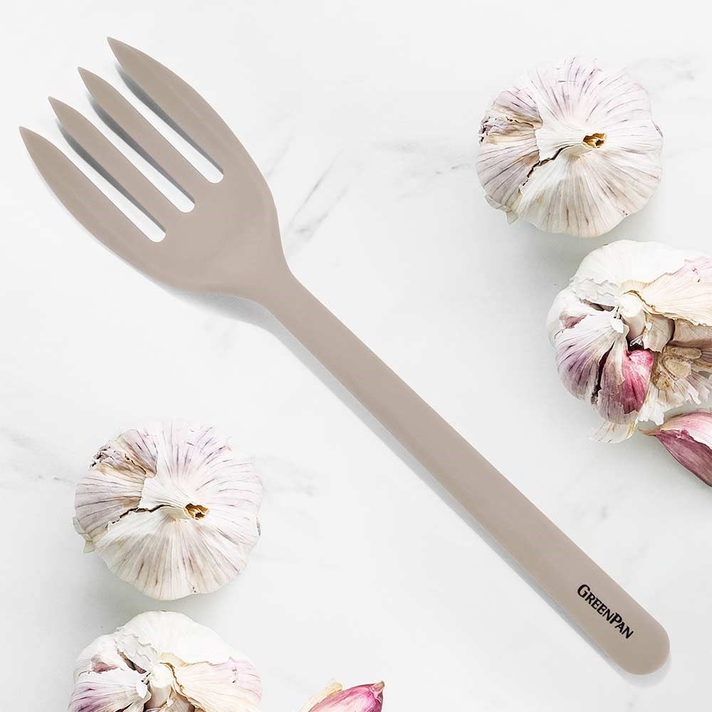 Mutfaktaki hazırlık ve servis süreçlerinde hem dayanıklılık hem de estetik bir görünüm arayanlar için tasarlanan bu servis çatalı, çeliğin sağlamlığını gıda dostu silikon dış yüzeyle birleştirir. Hassas yüzey teknolojisine sahip pişirme gereçleriyle tam uyumlu yapısı, mutfak ekipmanlarınızın ömrünü uzatırken şık bej rengiyle mutfağınıza modern bir dokunuş katar.