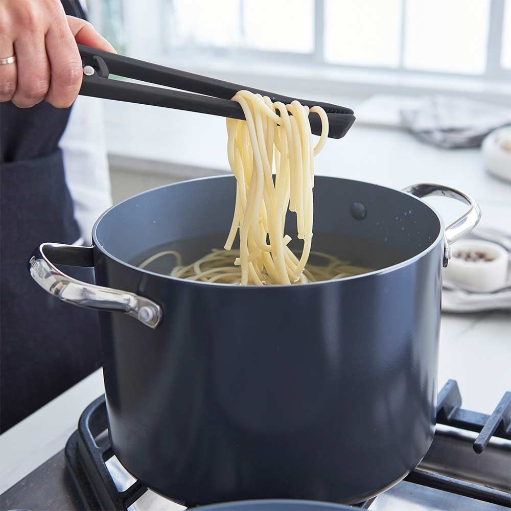 GreenPan Silikon Kilitli Maşa, mutfakta yiyecekleri kavrama, çevirme ve servis etme işlemlerinde en büyük yardımcınız olacak. Çeliğin sağlamlığını gıda dostu platin silikon ile birleştirir. Seramik yapışmaz tavalarla güvenle kullanılabilir, yüzeylere zarar vermez. Kilitli tasarımı sayesinde kolayca kapanır ve mutfakta yer kaplamadan saklanabilir.