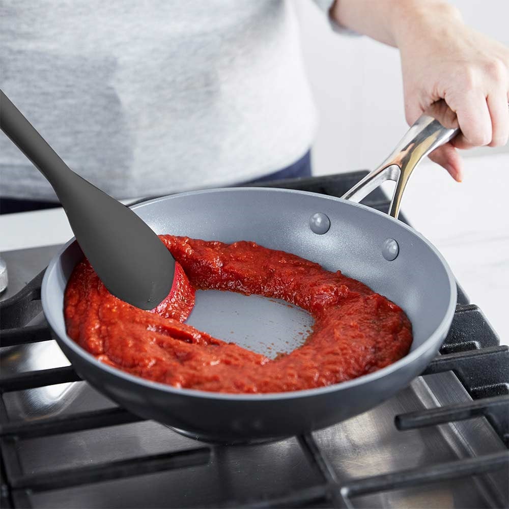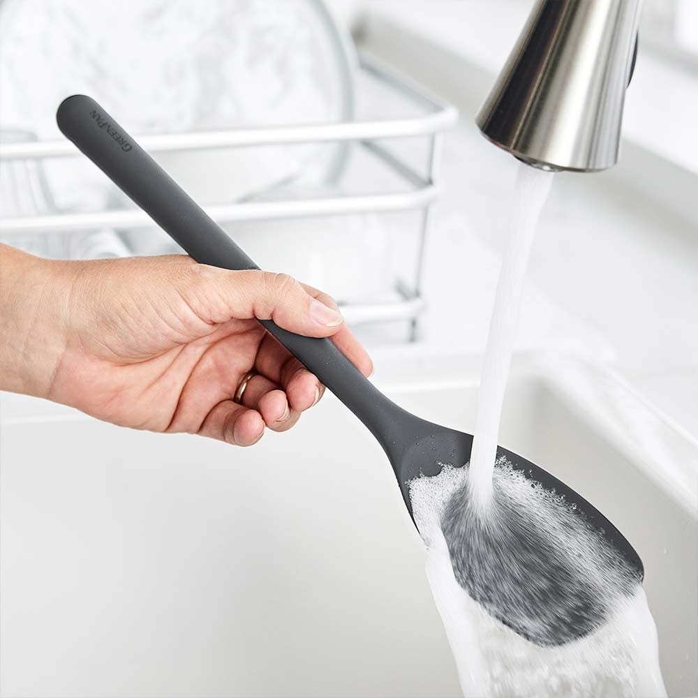 GreenPan Platinum silikon koleksiyonun bu özel sote kaşığı, mutfaktaki her türlü karıştırma ve servis görevi için hem dayanıklılığı hem de esnekliği bir arada sunar. Modern gri tasarımı, sağlam iç yapısıyla birleşerek seramik tavalarınızın en güvenli ortağı olur.