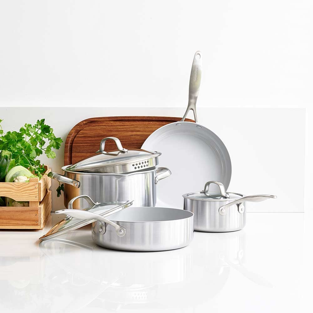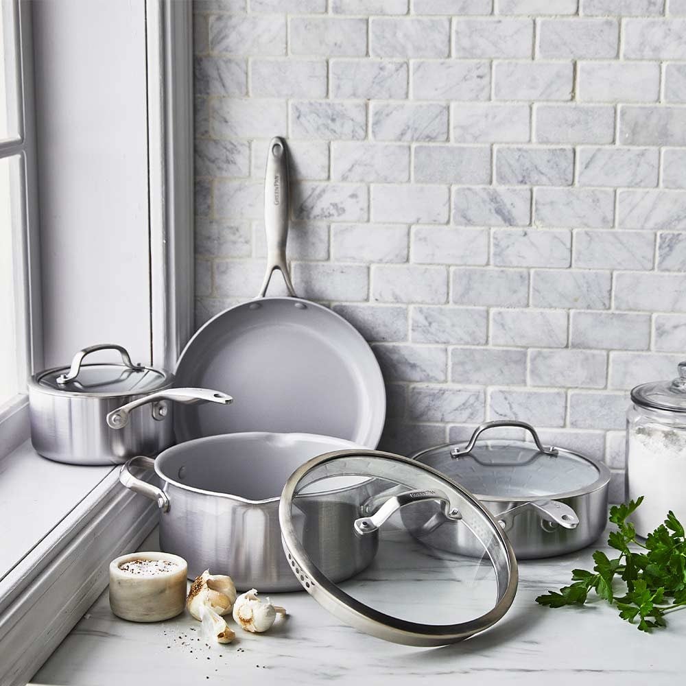 GreenPan Venice Pro Evershine seti indüksiyon dahil tüm ocak tipleriyle uyumludur ve 220°C’ye kadar fırında kullanılabilir. Sağlıklı yüzey teknolojisi, güçlü gövde yapısı ve modern tasarımıyla mutfakta uzun süre güvenle kullanılabilecek premium bir pişirme setidir.