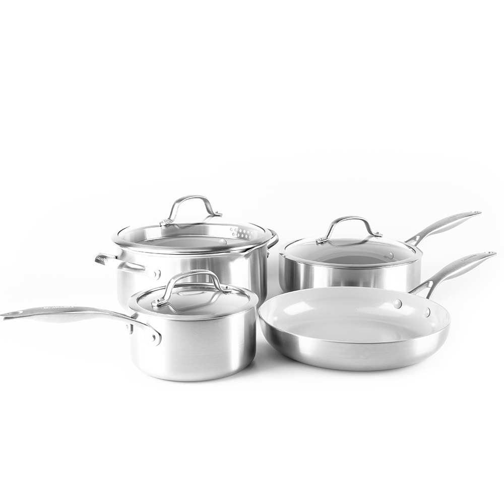 GreenPan Venice Pro Evershine Tencere Seti profesyonel pişirme performansını GreenPan’in sağlıklı yüzey teknolojisi ile bir araya getirir. Üç katmanlı gövde yapısı sayesinde ısı hızlı ve dengeli şekilde iletilir, bu da pişirme sırasında kontrollü ve verimli sonuçlar elde edilmesine yardımcı olur.