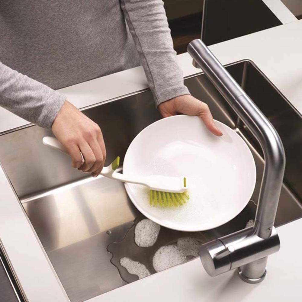 Geleneksel Bulaşık Fırçalarının Aksine, Edge™ Dikey Veya Yatay Olarak Lavabo Kenarında Bekletilebildiği İçin Ekstra Bir Tutucuya Gereksinim Duymaz. Canlı Yeşil Rengiyle Mutfağınıza Modern Bir Dokunuş Katarken Uzun Ömürlü Kullanım Sunar.