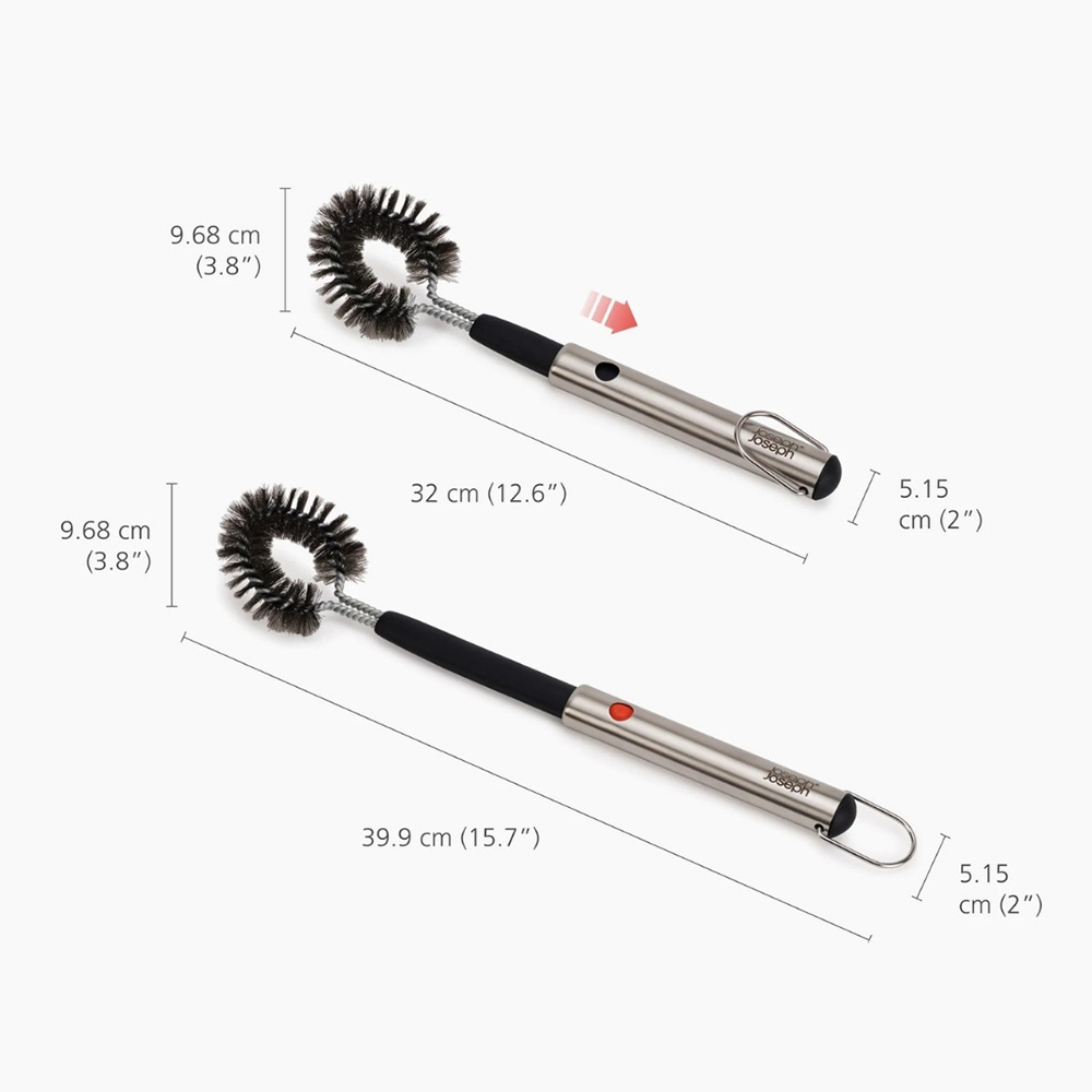 Uzatılabilir Başlık Teknolojisi: Temizlik sırasında fırça başlığını dışarı doğru uzatarak ellerinizi ısıdan uzak tutabilir ve ızgaranın en derin noktalarına ulaşabilirsiniz. İşiniz bittiğinde başlık içeri çekilerek kompakt bir saklama imkanı sunar.