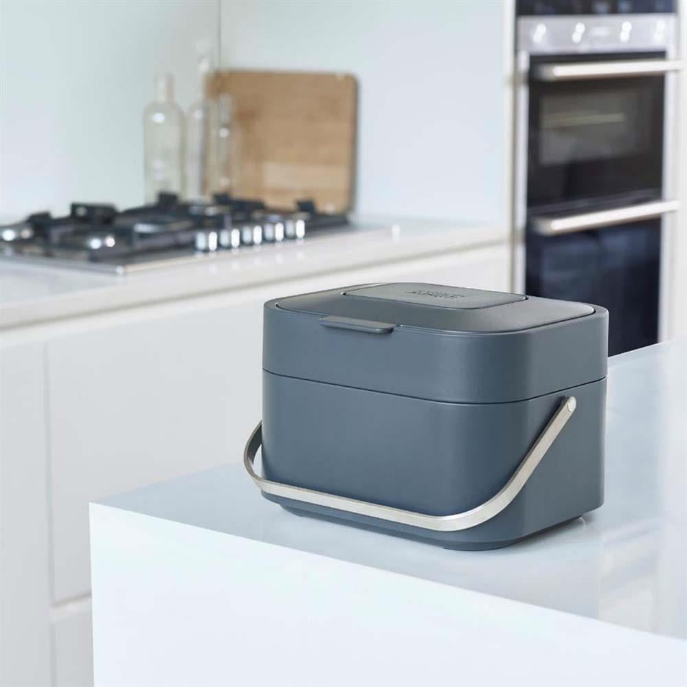 Stack™ Gıda Atık Kutusu, yemek hazırlığı sırasında ortaya çıkan organik atıkları mutfağınızda koku veya kirlilik yaratmadan biriktirmek için özel olarak tasarlanmıştır. Modern gri tonu ve kompakt yapısıyla tezgah üzerinde şık bir duruş sergilerken, akıllı havalandırma sistemiyle atık yönetimini kolaylaştırır.