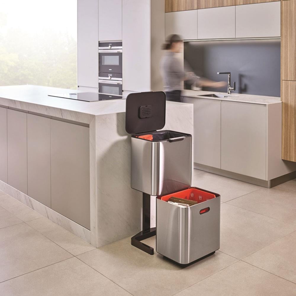 Bu 60 Litrelik Devrimsel Tasarım, Dikey Olarak Yerleştirilmiş İki Adet 30 Litrelik Bölmeye Sahiptir. Üst Bölme Genel Evsel Atıklar İçin İdealdir; Alt Kısımdaki Çekmeceli Bölme İse Geri Dönüştürülebilir Atıklar (Kağıt, Cam, Plastik) İçin Geniş Bir Alan Sunar. Ayrıca Ürün İçerisinde Atık Gıdaları Hijyenik Şekilde Biriktirebileceğiniz Çıkarılabilir Bir Kompost Kutusu Da Yer Alır.