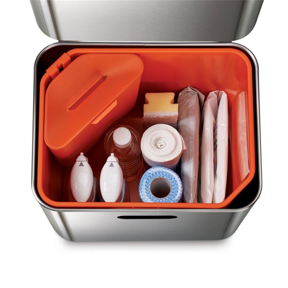 Kapağın İç Kısmına Entegre Edilen Değiştirilebilir Aktif Karbon Filtre, Çöp Kutusundan Gelen Kötü Kokuları Etkili Bir Şekilde Emer Ve Havayı Taze Tutar. Dış Yüzeydeki Paslanmaz Çelik Gövde, Parmak İzi Tutmayan Özel Bir Kaplamaya Sahiptir; Bu Sayede Çöp Kutunuz Daima Parlak Ve Lekesiz Görünür.