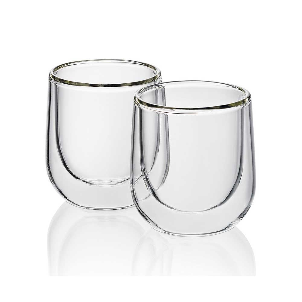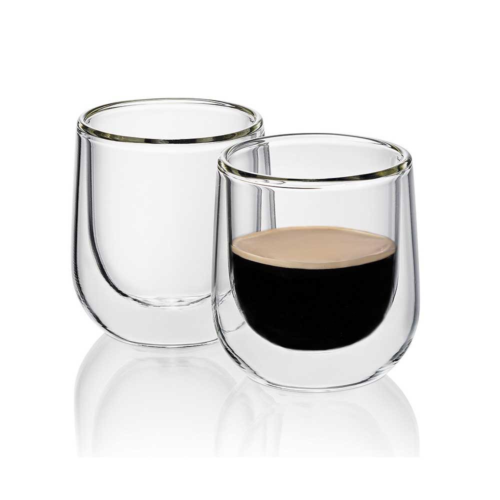 Espresso bu şeffaf bardaklarda kendini gösteriyor. Bu camlar doldurulduğunda bile dokunması hoş çünkü çift cidarlı camların en büyük avantajı camın ısınmamasıdır. Bu, içecek daha uzun süre sıcak kalırken parmaklarınızın serin kalması anlamına gelir.