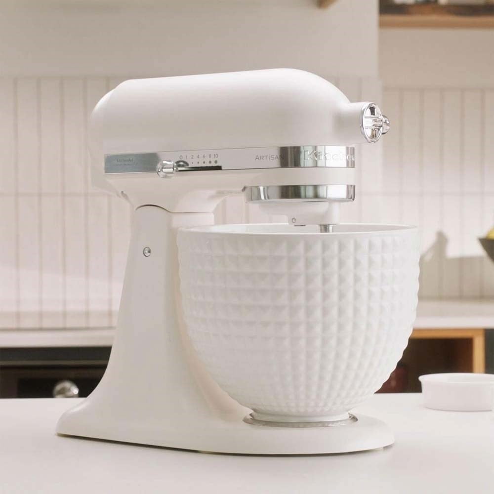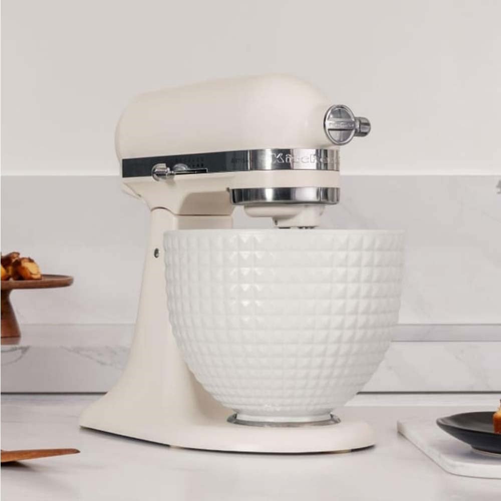 Porselen beyazı stand mikser ve beyaz, delikli kase, sakin bir berraklık ve istikrarlı bir performans sunar; bu ikili, her mutfağa kusursuz bir şekilde uyum sağlarken, her karıştırmada hassas ve güvenilir sonuçlar verir.