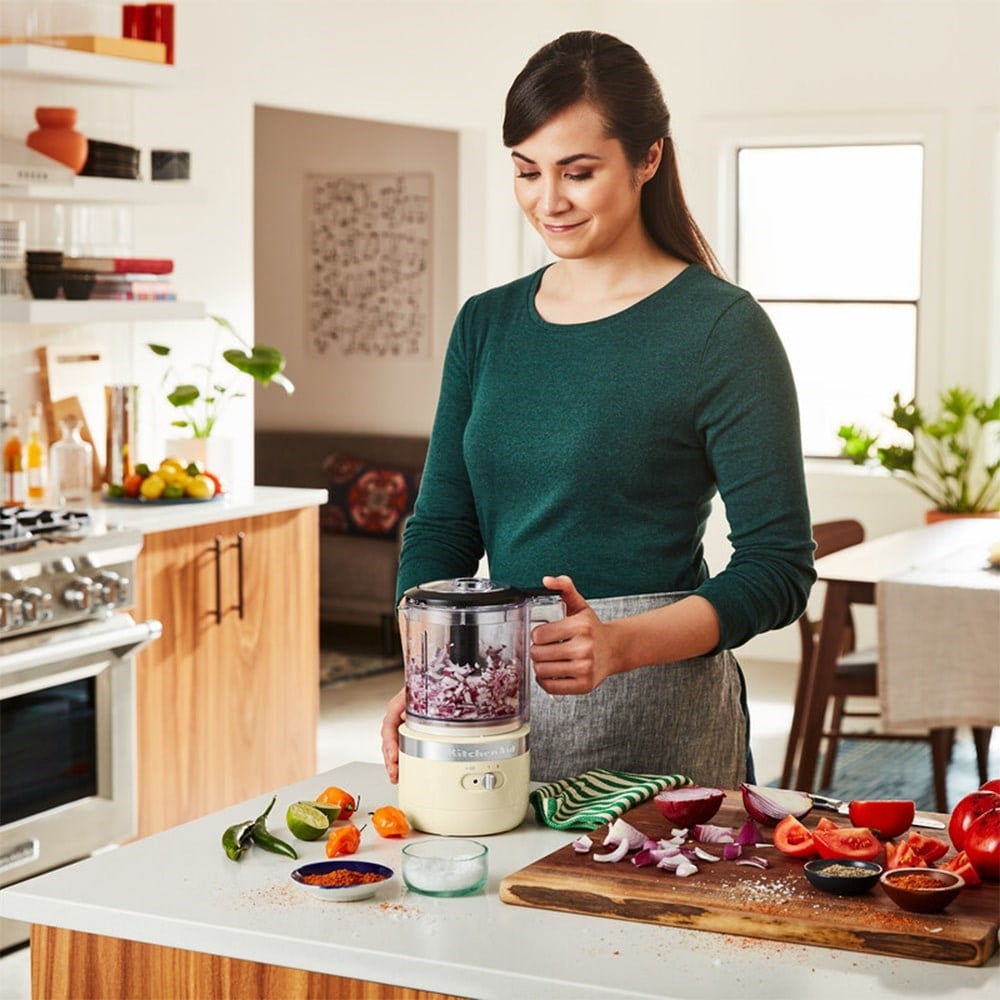 KitchenAid'in kablosuz mutfak robotu ile tutkularınızın sizi götürdüğü yere gidin. Aradığınız gücü kablosuz bir tasarımda sunar. Güçlü, şarj edilebilir Lityum iyon pille tasarlanan yeni kablosuz mutfak robotu, optimum çalışma süresi ve performans sunar. Bir tam şarj ile 40 adede kadar soğan doğrayabilirsiniz*. Pil gösterge ışığı, yeniden şarj etmeniz gerektiğinde sizi uyarır. Ürünle birlikte verilen paslanmaz çelik bıçak veya çırpma aksesuarı ile doğrayın, karıştırın, püre haline getirin ve çırpın. Meyve, sebze ve yeşillikler, çiğ etler ekmek kırıntıları, yumurtalar, krema, kuru yemişler ve daha fazlasını işler. 2 hız seçeneği ile kıvamın son halini kontrol edebilir ve kapaktaki ekleme haznesinden sıvı malzemeler ekleyebilirsiniz. Koleksiyonu en sevdiğiniz renkte tamamlamaya ne dersiniz? Kablosuz Koleksiyonunda her biri ayrı olarak satılan bir mutfak robotu, el blenderi ve el mikseri bulunur. Kullanışlı şarj cihazı ürünle birlikte verilir ve koleksiyondaki tüm ürünlerde kullanılabilir. *90 - 110 g'lık soğan boyutuna göre.