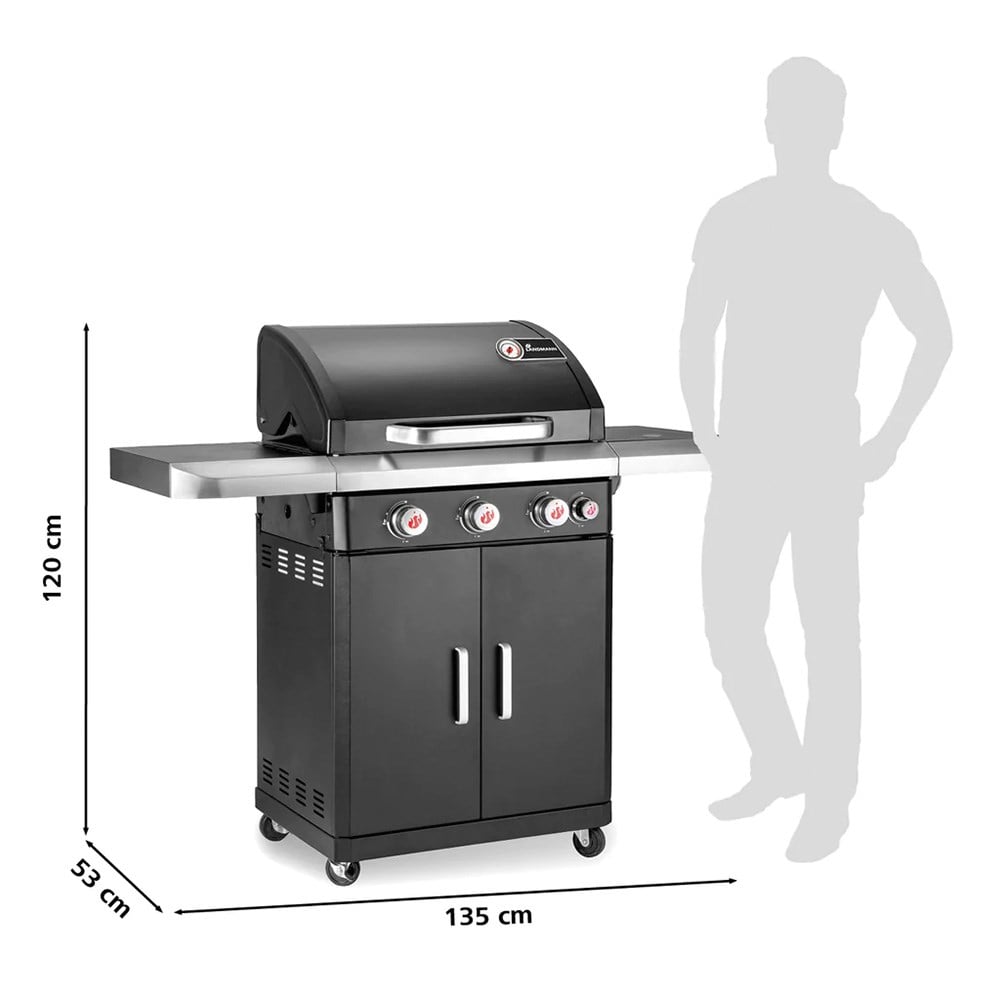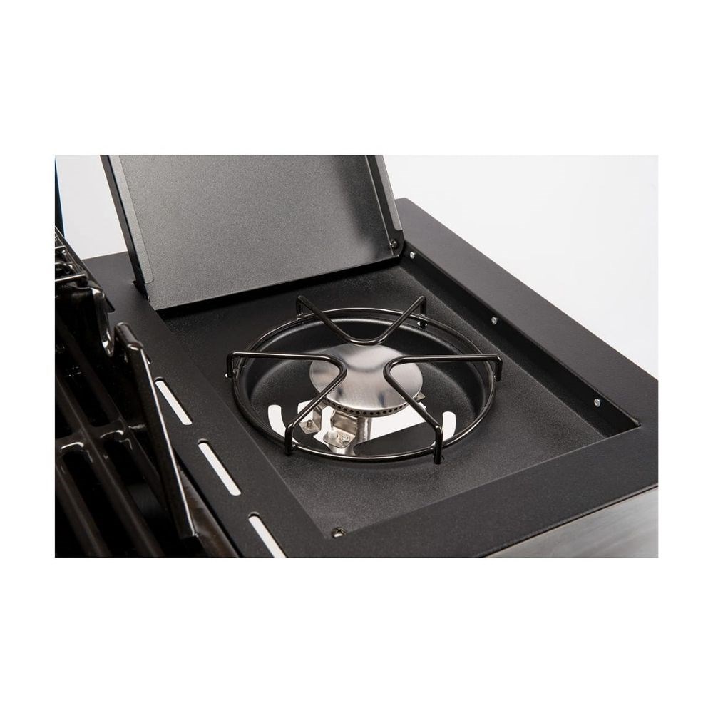 1 x 3.0kW paslanmaz çelik ayarlanabilir yan brülör'e sahiptir. Yan brülörler, ızgara yaparken daha küçük garnitürler veya soslar yapmak için idealdir. Ana ızgarayı etkilemeden farklı yiyecekleri farklı sıcaklıklarda pişirmenizi sağlar.