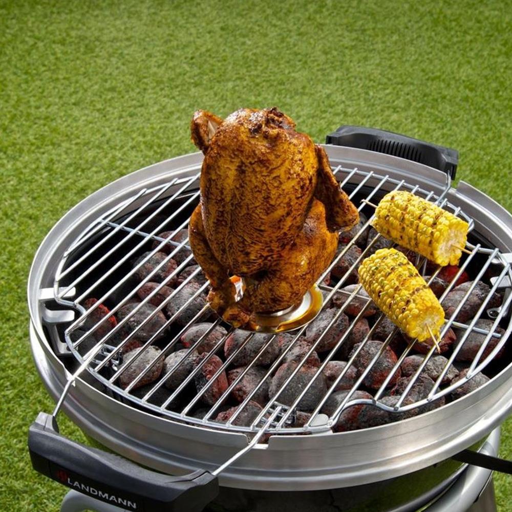 Paslanmaz çelik Landmann Selection tavuk tutacağı ile kolayca tavuklarınızı pişirin. Landmann tavuk tutucu, tavuğu marine ederken veya soslarken de işinizi kolaylaştırır. Dışı çıtır, içi sulu tavuklar hazırlamak için Landmann Selection tavuk tutucuyu ster ızgarada, ister fırında kullanabilirsiniz.