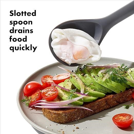 Fasulye ve bezelye ya da makarnayı doğrudan kaynar sudan almaya veya sotelenmiş sebzeleri fazla yağından arındırmaya olanak tanır. Oluklu kaşığın esnek kenarları yapışmaz ve pişirme kabını çizmeden kayar.