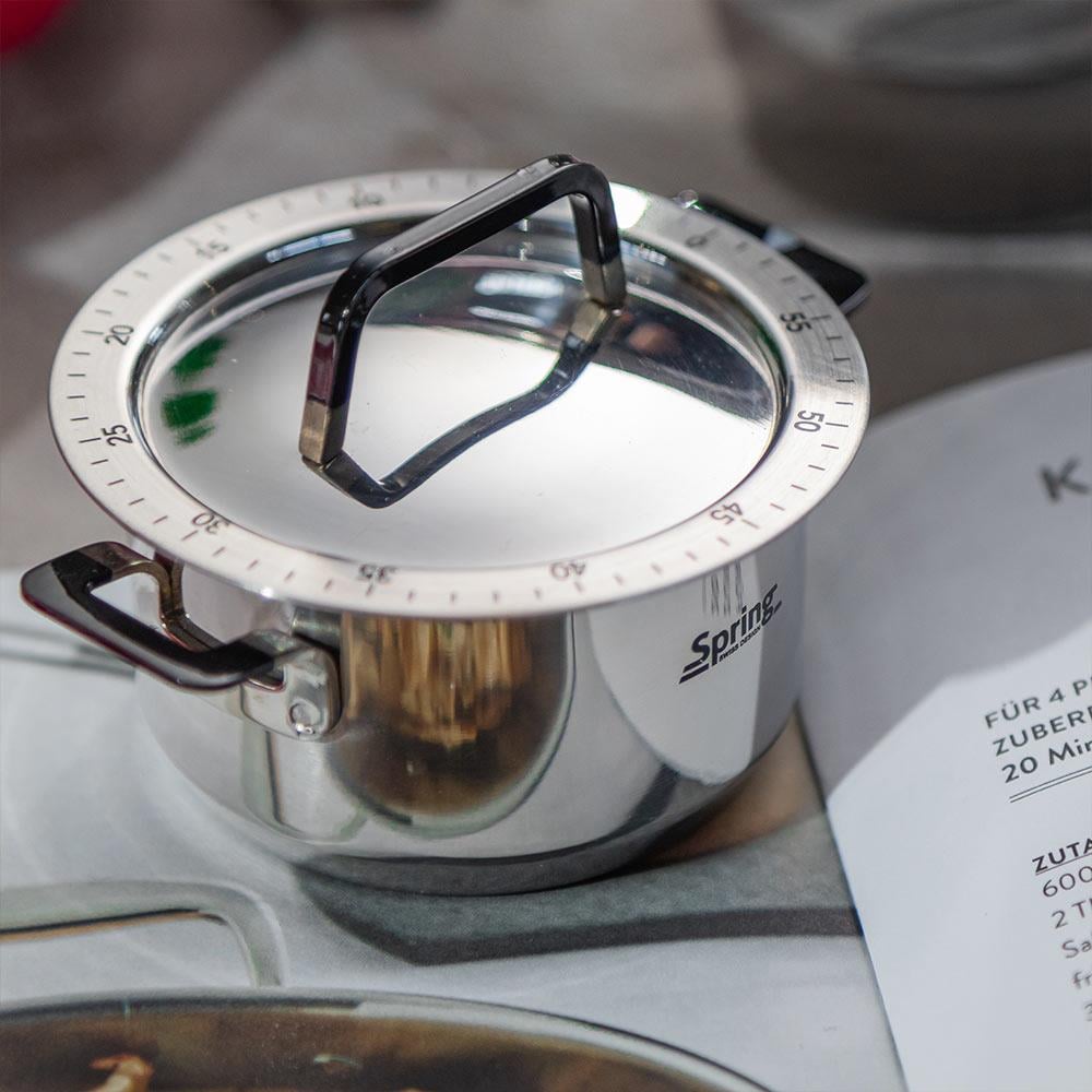 Yüksek kaliteli paslanmaz çelikten üretilen bu orijinal zamanlayıcı, hassas işlevselliği çekici bir görünümle birleştiriyor. Bir kez 59 dakikaya kadar kurulur, daha sonra istenilen süreye ayarlanır