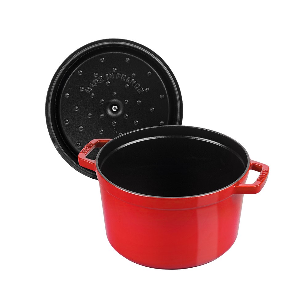 İster et ister balık veya sebze yemeği olsun, bu Staub tencerede kolayca ve güvenli bir şekilde leziz yemekler yarapabileceksiniz. Tencere, çeşitli yemekleri hassas bir şekilde hazırlamak için kullanabileceğiniz bir döküm demir kavurma tavasıdır. Kabartmalı logosu ve gümüş topuzu bulunan klasik tasarımı sayesinde, bu tencere, yemeklerinizi masaya şık bir şekilde servis edebileceğiniz bir mutfak gerecidir. Döküm demir tencerenin iç kısmı siyah sıvı cam ile kaplıdır. Bu, gıdaya mükemmel bir tat verir ve taze malzemelerin doğal lezzetini artırır. Tencere ısıyı depolar ve yavaşça dağıtır. Gıdanız masada bile uzun süre sıcak kalır. döküm demir Staub mutfak gereci çeşitli yemekler hazırlamak için uygundur. Kiraz renkli tencere masanızda göze çarpacak ve işlevsel, sağlam ve temizlemesi kolay bir tencere olarak birçok fırsatta kesinlikle kullanacağınız tamamlayıcı bir gereç olacaktır.