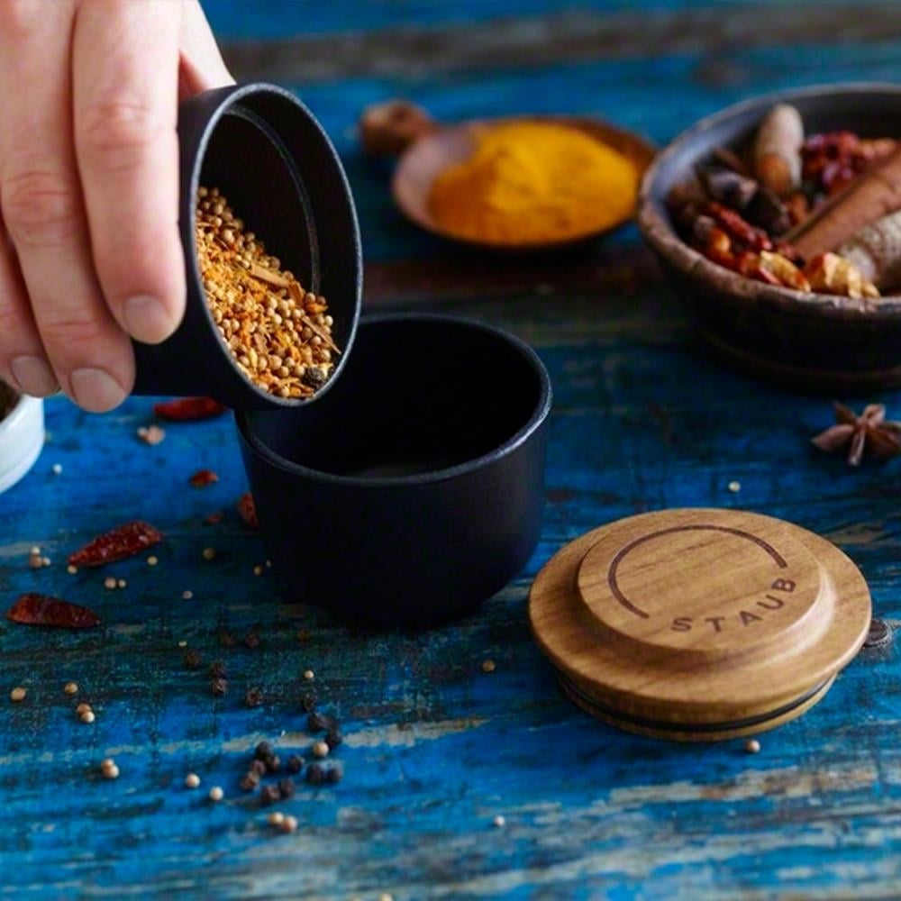 Staub Spice Öğütücü, baharatlarınızı ince tozdan kaba doğramaya kadar istediğiniz gibi öğütmenizi sağlar. Her türlü baharat için uygun olan bu 3 parçalı set, saklama kabı olarak iki katına çıkar ve kolay saklama için iç içe geçer. Mükemmel pesto veya baharat karışımı için, Staub Harç ve Pestle zahmetsiz kullanım için ergonomik olarak tasarlanmıştır. Aletler, baharat öğütücü ve harç ve havan tokmağı, siyah silikon ve dökme demir ile şık bir şekilde eşleşirken kendini iyi hissettiren sürdürülebilir Akasya ağacından üretilmiştir. el. Ahşabın doğal varyasyonu sayesinde her bir parça, tıpkı pişirme aletlerinizin olması gerektiği gibi özeldir.