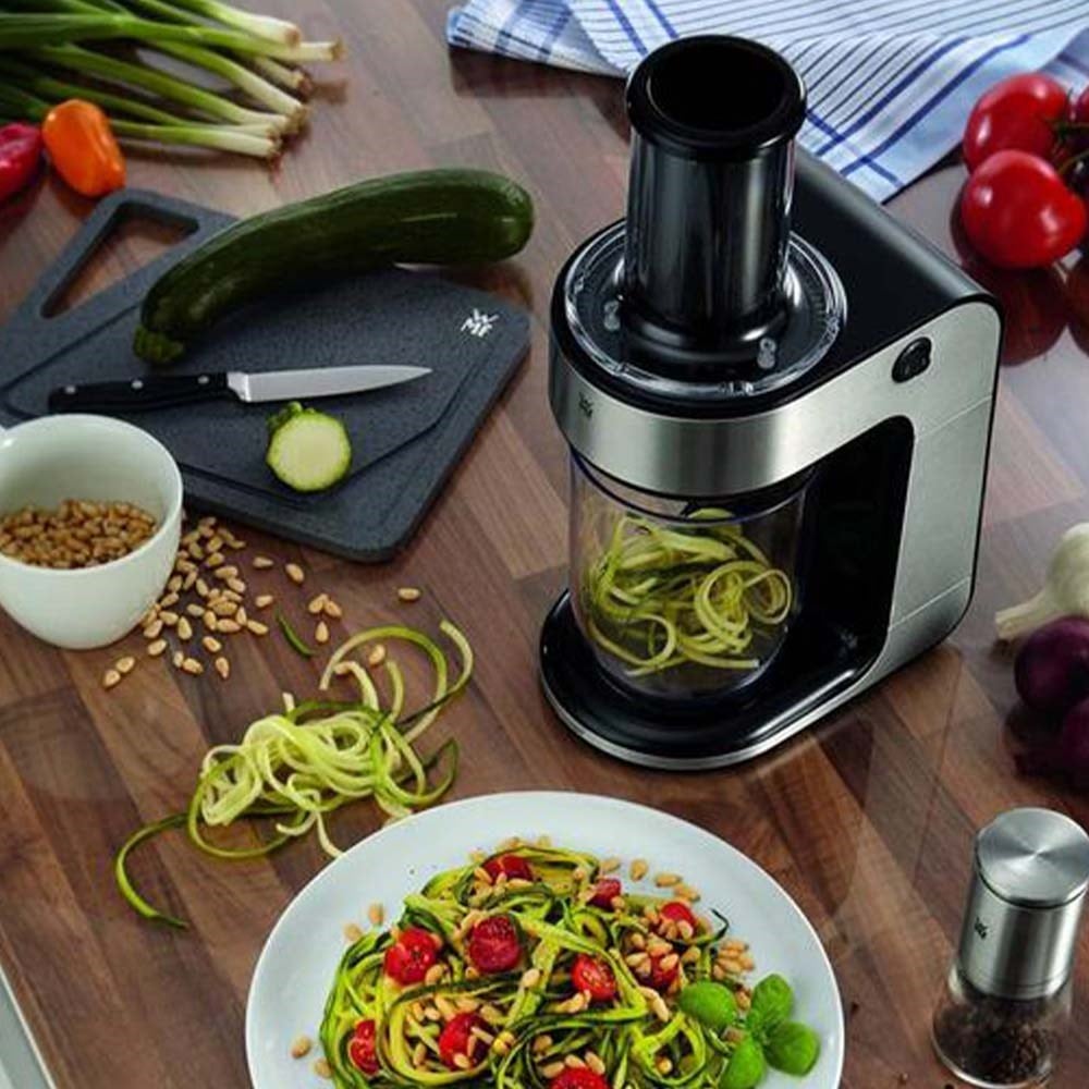 Kendi sınıfında ilk elektrikli spiral kesici ile sebzeler, makarnalar bir tuş basımıyla saniyeler hızında kolayca hazır.