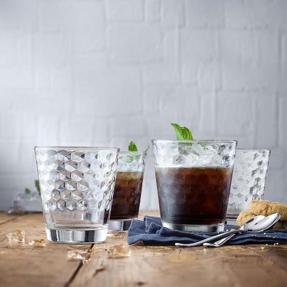 Su bardağı seti içerisimde 4 bardak vardır. Petek şeklindeki tasarımlarıyla bu bardaklar mutfaklarınıza camın estetik şıklığını katacaklar. Her bardak 230 ml’liktir ve yükseklikleri 10 cm’dir. Isı direnci olan bu bardakların bakımı da kolaydır, bulaşık makinesinde yıkayabilirsiniz. Hem kahve hem çay aşığı olan tasarımcı Jan Christian Delfs WMF CoffeeTime ve TeaTime collections ürünlerini tasarlarken zerafet ve sadelikten ilham almıştır. Açık tasarımı süt köpüğünü kalın tutar ve kahvenin katmanları net bir şekilde görülür. Bardaklar yüksek kaliteli WMF camdan yapılmıştır ve bardakların altında kalın bir cam duvar vardır. Bu özellik mükemmel sıcaklığın korunmasını ve bardağı tuttuğunuzda elinizin yanmamasını sağlar. Tutma yeri olmayan şık ve cam bardaklarınızla rahatlıkla içeceğinizi yudumlayabilir ve mutfaklarınıza camın estetik şıklığını katabilirsiniz.