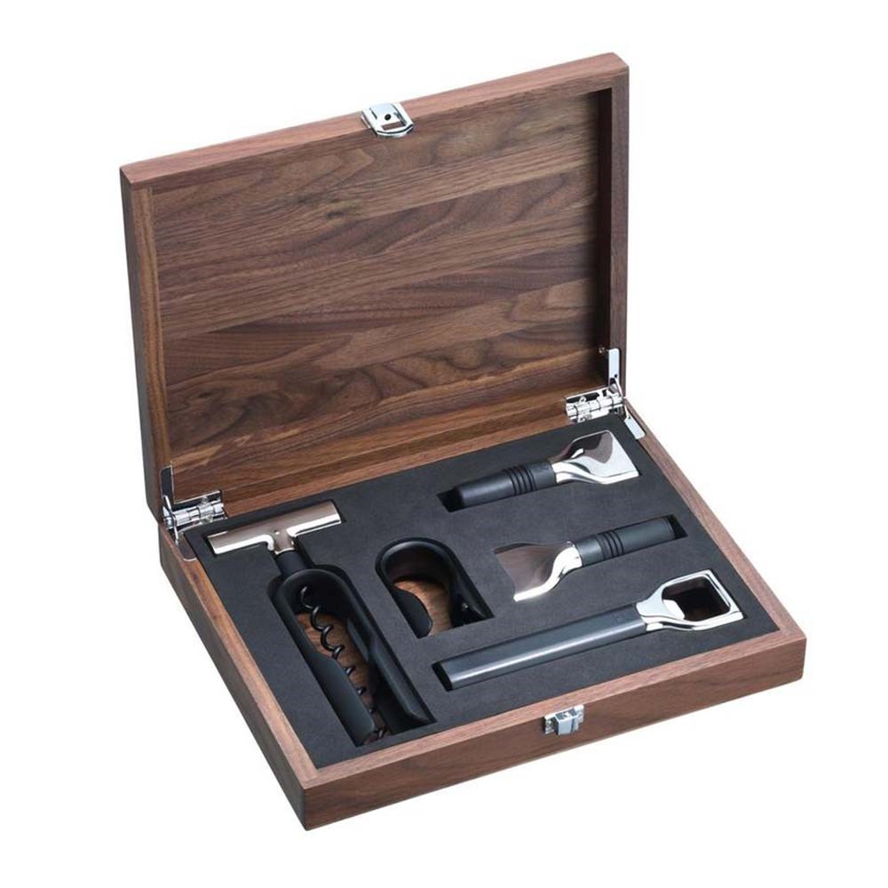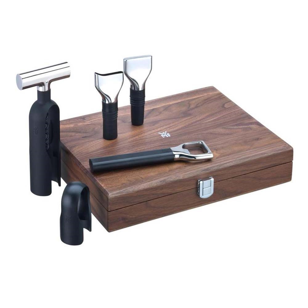 Şarap severler ve uzmanlar, hayattaki en güzel şeylerin tadını çıkarmayı bilirler. Ve iyi bir şişe şarap en başından beri en iyisini hak eder. Eksiksiz 5 parçalı WMF Baric Sommelier Şarap Seti ile şarabı şık bir şekilde servis edin ve saklayın. Keskin folyo kesiciyi kullanarak kapsülü zahmetsizce çıkararak başlayın, ardından şişeyi tirbuşonla profesyonelce açın ve tadını çıkarmadan önce nefes almasına izin verin. Son olarak, zarif şarap akıtıcıyı kullanarak her bir bardağa mükemmel dozlama yapın ve servis yapın; damlamadan tamamen arındırın. Bittiğinde, şarabın buketini günlerce koruyacak hava geçirmez bir mühür oluşturmak için şişe tıpasını kullanın. Ayrıca, zahmetsiz kullanım için optimize edilmiş birinci sınıf bir şişe açacağı da dahildir. Bu sommelier seti, sofistike Baric koleksiyonunun geri kalanıyla mükemmel bir uyum içinde zarif bir ceviz ağacından kasa içinde gelir.