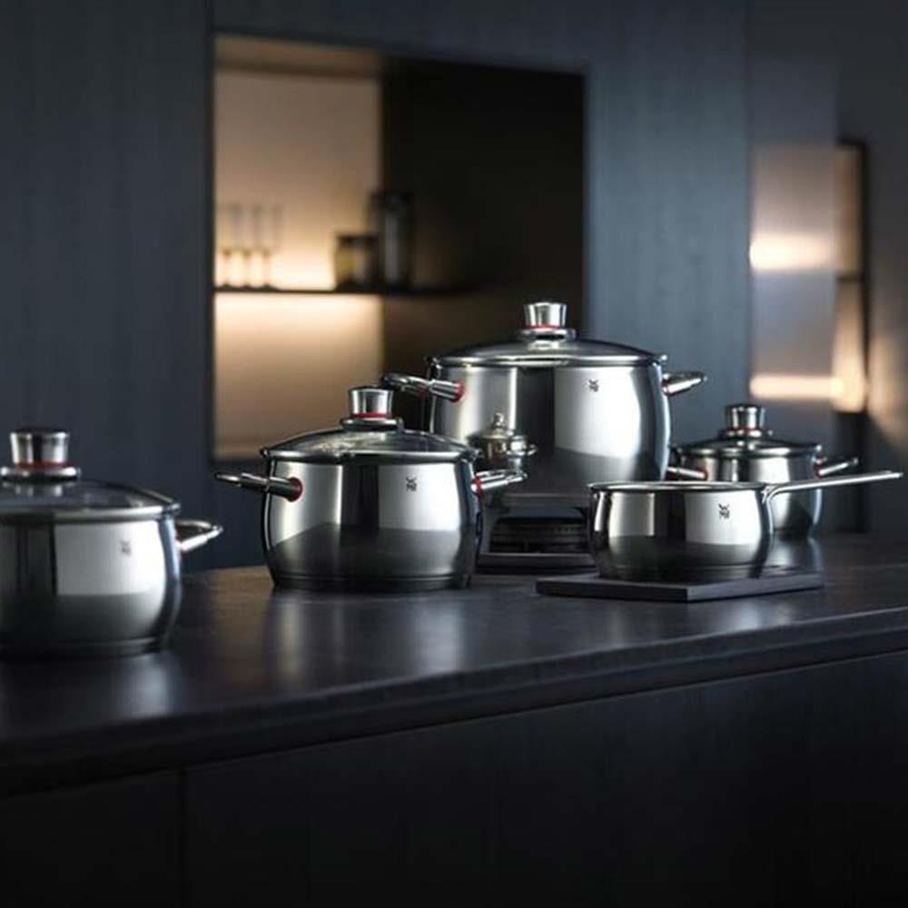 Olağanüstü yemek pişirmeyi tam bir gönül rahatlığıyla keşfedin: WMF Quality One Tencere Seti, dokunuşa hoş gelen kulpları ve her gün güvenebileceğiniz yüksek kaliteli malzemeleriyle ev yemeklerinize restoran kalitesinde sonuçlar getirmek için tasarlanmıştır. WMF'nin patentli Cool+ teknolojisi, toplam rahatlık ve kolaylıkla güvenli pişirme için tencereden sapa ısı transferini sınırlar. Birinci sınıf pişirme kaplarımız, yüksek kaliteli Cromargan®'dan ustalıkla hazırlanmış olağanüstü dayanıklılığa sahiptir: paslanmaz çelik 18/10: bulaşık makinesinde yıkanabilir, aside dayanıklı ve fırına dayanıklı, asla bozulmayan şık bir estetikle uzun süre dayanacak şekilde yapılmış tam lezzet ve performans sağlar etkilemek. Ağız sulandıran çorbalar, güveçler ve çok çeşitli tarifler, buhar delikli zarif cam kapaklar ve indüksiyon dahil tüm set üstü ocaklarla uyumlu TransTherm® üniversal tabanlar sayesinde zahmetsizce hazırlanır. Set içeriği : 16/20/24 cm (2.0/4.1/6.8L) Çorba Tencereleri, 20 cm Tencere ve cam kapakları