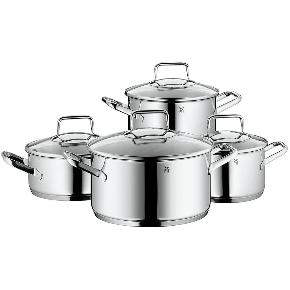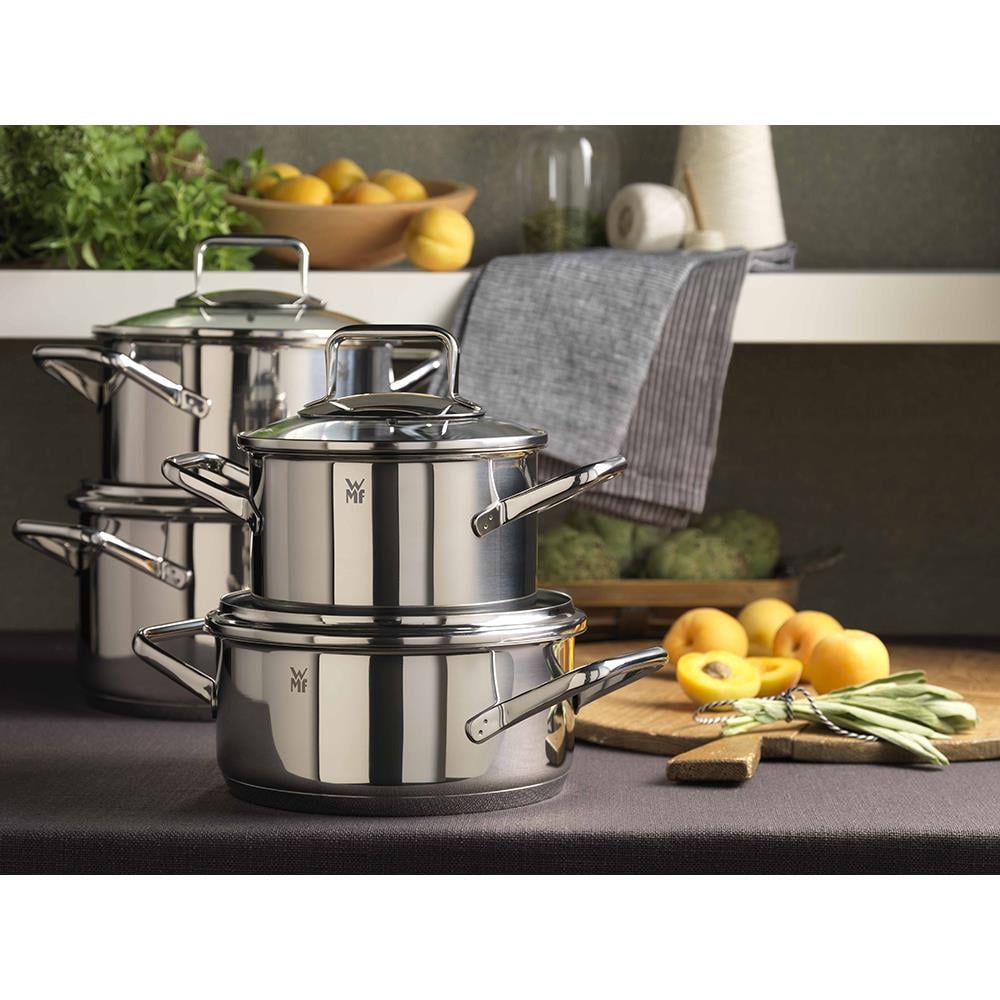 WMF 4 Parça Tencere Takımı Trend, sizinle.Bu tencereler klasik tasarımı ve ısınmayan kulplarıyla ön plana çıkıyor. Isıya dayanıklı cam kapakları sayesinde, yemeğinizi her zaman kolayca kontrol edebilirsiniz. Cromargan® tencereler, TransTherm® taban sayesinde tüm ocaklara uygundur. WMF 4 Parça Tencere Takımı Trend.