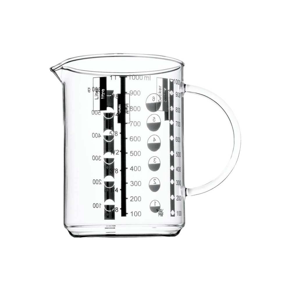 Su, et ve sebze suyu, süt, krema ve daha birçok sıvı malzeme... WMF Gourmet koleksiyonundan bu ölçü kabı, litre ve mililitre cinsinden kolay okunan ölçekler sayesinde malzemeleri kolay ve hızlı bir şekilde ölçmenize imkan tanır. Kap, bir litre sıvı alır. Ek olarak verilen gram ölçeği de yemeklerde veya hamur işlerinde size yardımcı olur. Örneğin, tartı gerekmeksizin şeker ölçebilirsiniz. Bardak ölçeği de, örneğin pilav yaparken pirinç ve su arasında doğru oranı belirlemek için kullanılarak büyük fayda sağlayabilir.