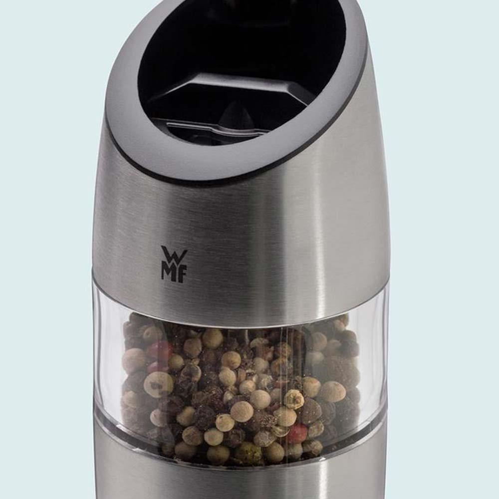 WMF Elektrikli Baharat Değirmeni, Almanya'da üretilmiştir. Tek tuşa dokunuşla çeşnilendirme yapın. Diğer elinizi başka işler için serbest bırakın. Elektrikli değirmenler orjinal Ceramill seramik öğütme sistemine sahiptir. Öğütme sistemi en inceden en kalına kadar kolayca ayarlanabilir. Öğütmeye başladığında öğütücünün ışığı otomatik olarak yanar. WMF değirmenler, Ceramill seramik öğütme mekanizması ile donatılmıştır. Seramik, çelikten daha sert, daha dayanıklı ve daha zor aşınır. Öğütme ayarı her zaman değiştirilebilir. Özel tasarım cam baharat haznesi istediğiniz zaman kolay bir şekilde tekrar doldurmak için tasarlanmıştır.