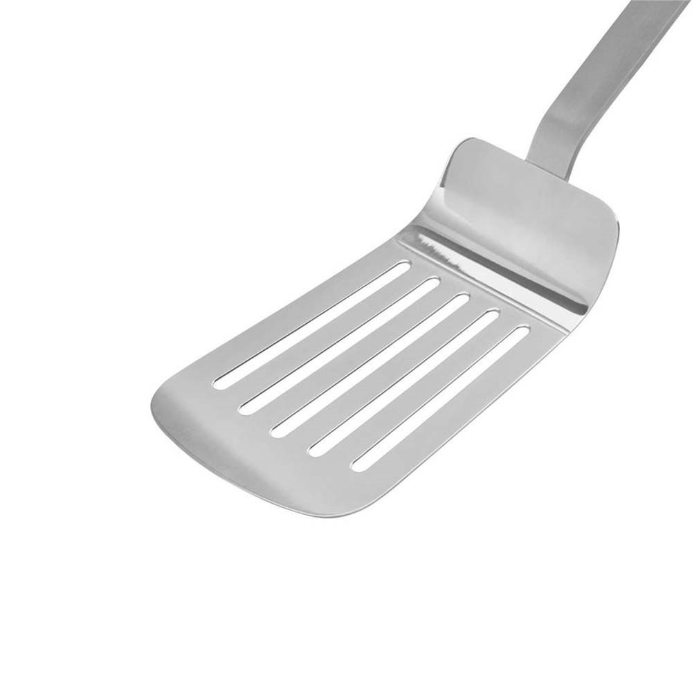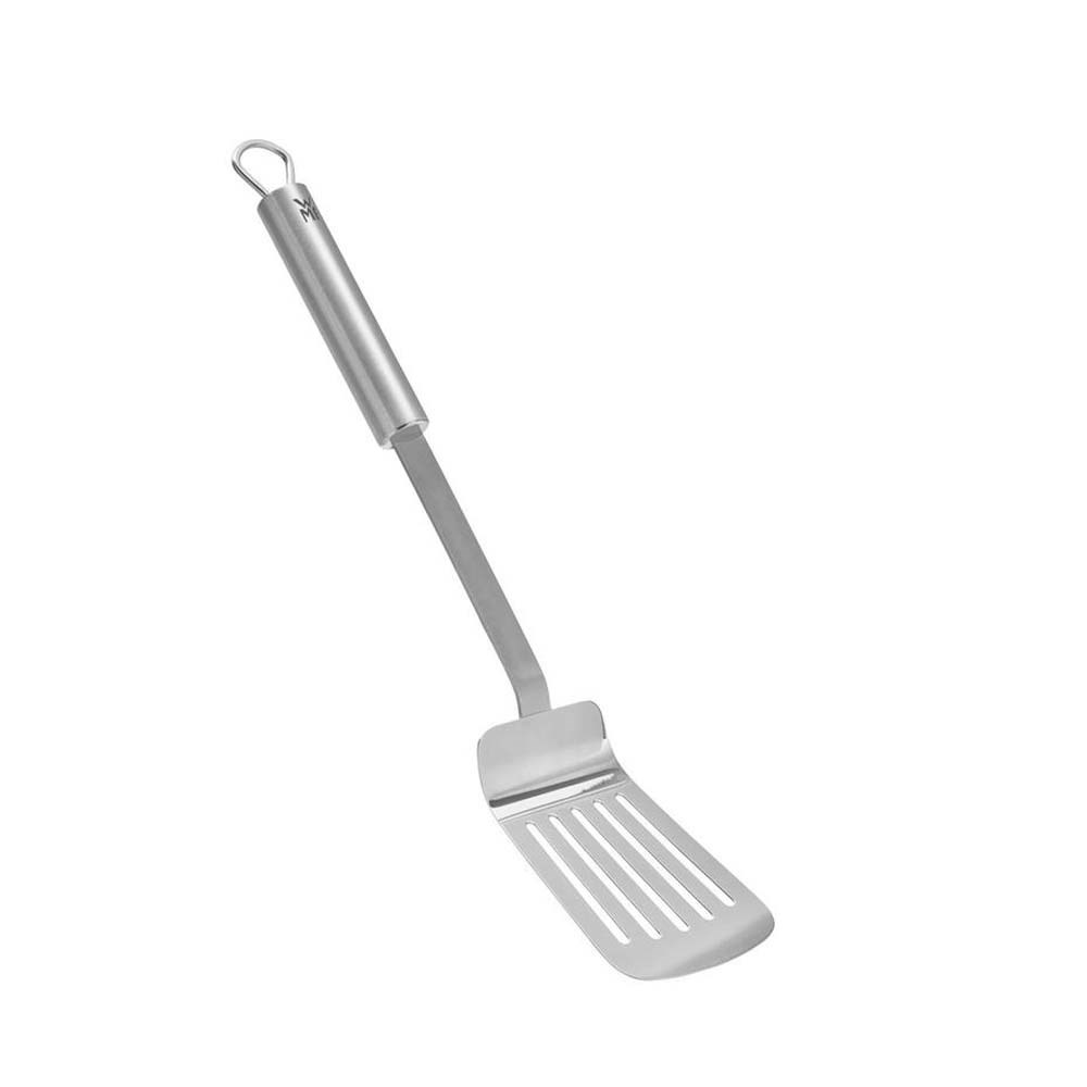 WMF'in büyük ızgara spatulasıyla, yumuşak et ve balıktan mükemmel pişmiş sebzelere kadar her şeyin tadını barbeküde çıkarın. Ekstra geniş, özel olarak tasarlanmış ön ucu, her türlü lezzetli ızgara yemeğin kaldırılmasını ve çevrilmesini güvenli ve kolay hale getirirken, geniş yuvalara sahip temas yüzeyi fazla yağın hızlı bir şekilde boşaltılmasını sağlar. Pratik saklama deliği ile uzun bir sapa sahip bu paslanmaz çelik spatula, zahmetsiz temizlik ve yıllarca kullanım için su geçirmez yapısıyla bulaşık makinesinde yıkanabilir. Ayrıca,18/10 paslanmaz çelikten oluşan, krom mat kaplamalı, zarif ve etkileyici Cromargan'dan üretilmiştir.