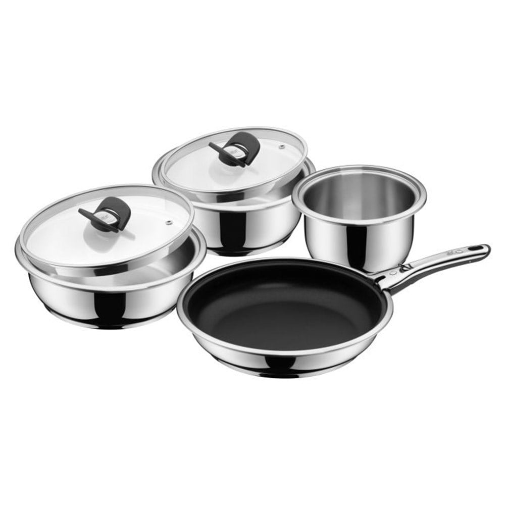 10 kg'a kadar taşıyabilecek kadar güçlü olan çıkarılabilir kulp, olağanüstü rahatlık sunar ve serideki tencere ve tavaların kolayca istiflenmesini sağlayarak %50'ye kadar daha fazla alan tasarrufu sağlamakta, artıkları buzdolabına koymak için masa - hepsi tek bir tıklamayla, 7 Parçalı Set: Kaplamalı kızartma tavası 28 cm, çorba tenceresi 16 cm, kapaklı 20 cm kızartma tenceresi, kapaklı 24 cm sote tenceresi, çıkarılabilir sap 360° bağlantı : Kulbu takmak için tencere kenarında herhangi bir yere basit bir tıklama yeterli, Zarif cam kapaklar yemek pişirirken kolay izleme sağlar, zahmetsiz istifleme için kelebek kulplar, Daha kolay, damlatmadan dökme ve lekesiz bir mutfak için geniş dökme kenarları, Enerji tasarrufu sağlayan optimum ısı dağılımı ve tutma için TransTherm® üniversal taban, İndüksiyon dahil tüm set üstü ocaklarla uyumlu, Cromargan®'dan üretilmiştir: olağanüstü dayanıklılık ve bulaşık makinesinde yıkanabilir hijyen için 18/10 paslanmaz çelik.