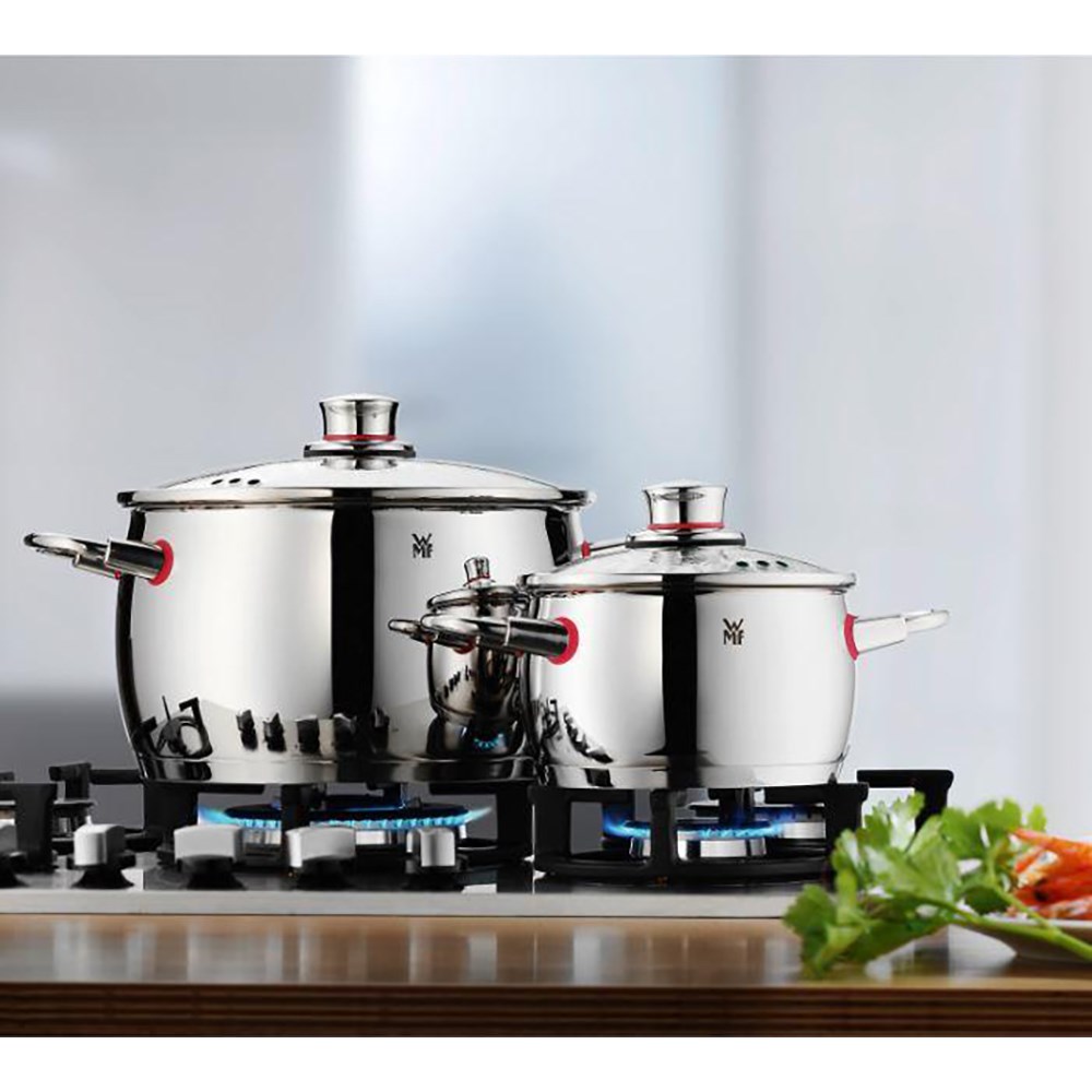 Kavisli kulpları ve kubbeli kapağı tencereye zarafet katıyor. Yemek pişirirken, tencereyi istediğiniz zaman kaldırabilirsiniz, parlak kırmızı noktalarıyla WMF'in patentli Cool+ teknolojisi sayesinde kulplar ısınmaz. Tencereler kolay taşınabilir Cromargan ve buhar delikli kapak ise ısıya dayanıklı üstün nitelikli camdan yapılmıştır. TransTherm taban sayesinde, indüksiyon ocaklarda da kullanıma uygundur. WMF Derin Tencere 20 cm Quality One 0775206380.