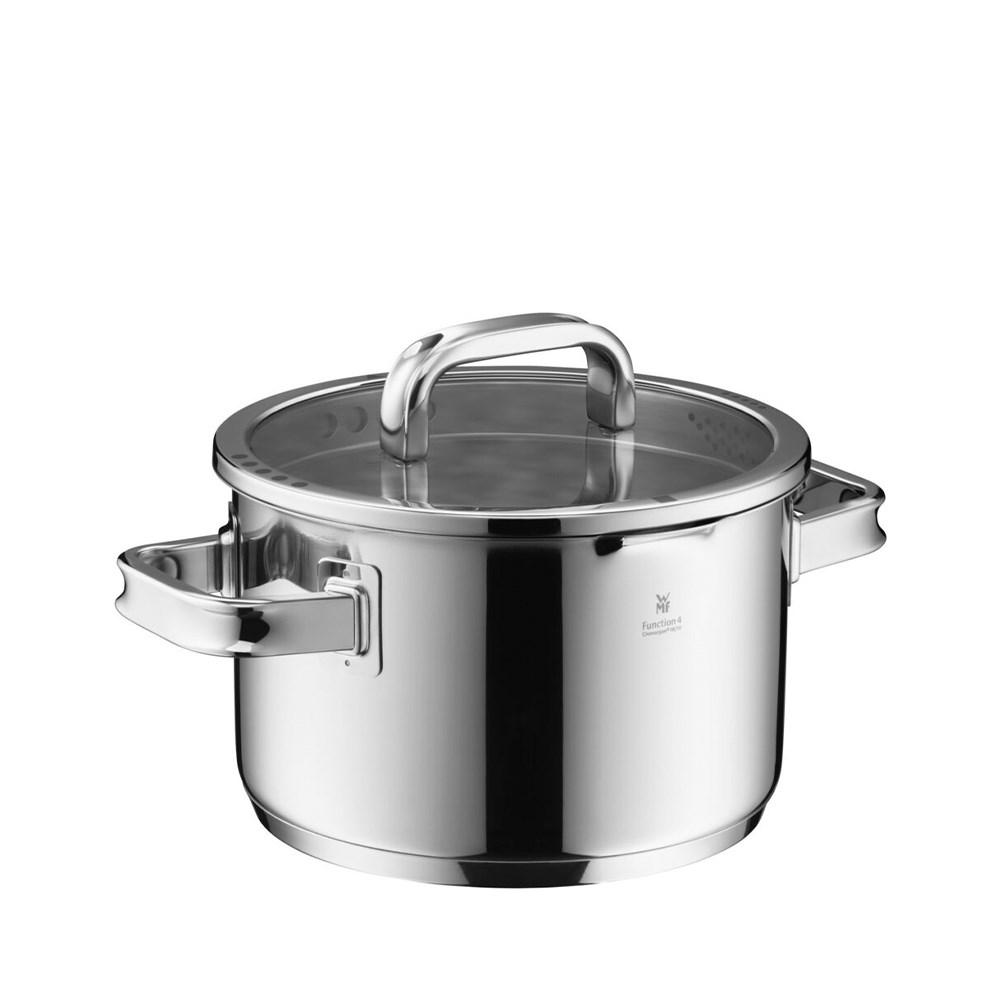 WMF Function4 Advanced tencere, lezzet dolu sıvı bazlı tarifler için her zaman doğru tercihtir. Lezzetli et suları, çorbalar ve güveçlerin yanı sıra patatesler ve karnabahar gibi daha büyük sebzelerin kaynatılması, pişirilmesi ve haşlanması için bolca yer vardır. Ağızlık dahil özel tasarım, çok işlevli kapakla bir araya gelir - az sulu tarifler, tamamen dökme veya makarna ve pirincin süzülmesi için farklı konumlara sahiptir. Rostodan mükemmellik için yavaş pişirilmiş makarna Bolognese'ye. Birinci sınıf pişirme kaplarımız, yüksek kaliteli Cromargan®: paslanmaz çelik 18/10'dan ustalıkla hazırlanmış olağanüstü dayanıklılığa sahiptir ve her zaman etkilemeyi başaran şık bir estetikle tam lezzet sağlar. Kullanışlı özellikler olağanüstü bir paslanmaz çelik tencere için bir araya geliyor: set üstü ocakta kullanıldığında serin tutan kulplar (180 °C'ye kadar fırında güvenli), yerleşik ölçüm işaretleri ve kolay dökülen geniş kenar.