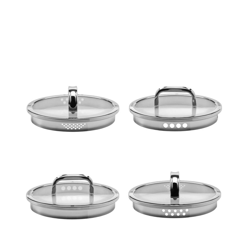 4 fonksiyon için 4 pozisyon: az suda pişirmek için kapalı, tam dökmek için açık, makarnayı süzmek için büyük elek ve pirinci süzmek için küçük elek.
