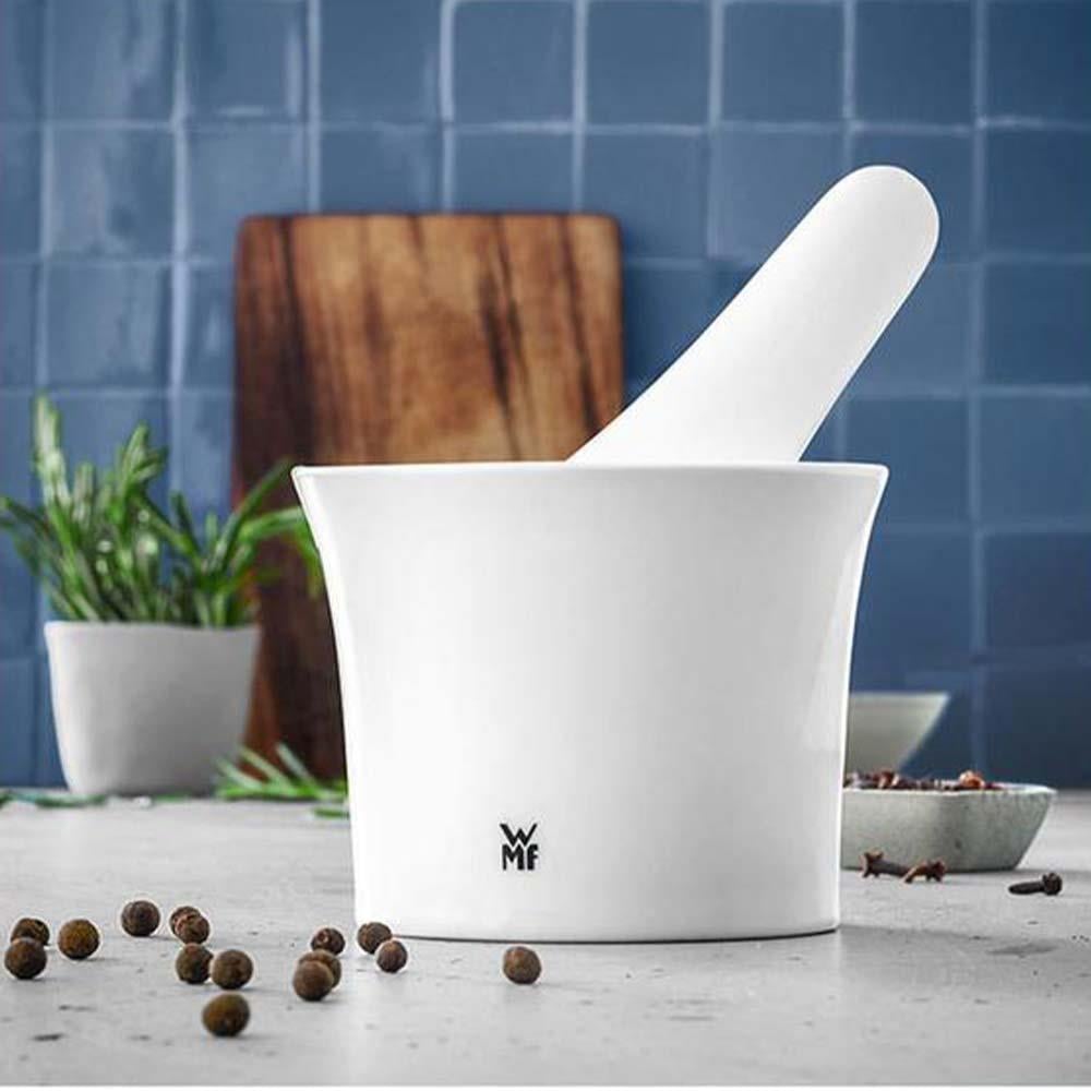 WMF Havan, otları, tohumları veya sert baharatları toz haline getirmek ve uçucu yağları ezerek aromalarını ortaya çıkarmak için kullanılır. Mutfakta, fesleğen gibi taze otlar pesto haline getirilebilir. Gourmet, WMF’in çok yönlü mutfak aletleri koleksiyonudur. Bu şık serideki ürünler mutfağınıza kesinlikle dahil etmeniz gereken önemli mutfak aletleridir. Neye ihtiyacınız olursa olsun Gourmet’nin her göreve uygun, WMF Cromargan paslanmaz çelik güvenceli, cam veya yüksek kalite sentetik materyalden üretilmiş bir mutfak aleti bulunur.