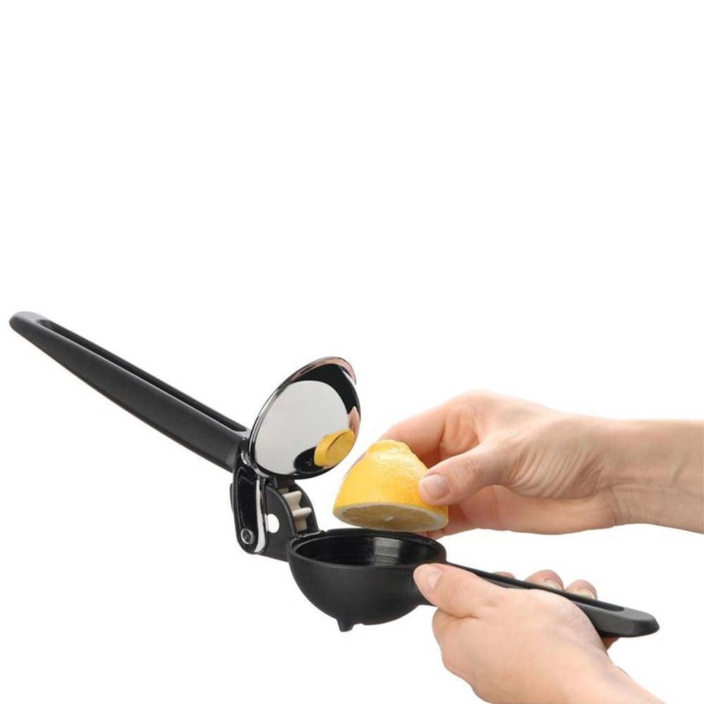 Elde limon sıkma işlemi daha kolay olamazdı: Yarım limonu veya misket limonu yüzü aşağı bakacak şekilde yerleştirin ve taze sıkılmış narenciye için üst kolu aşağı bastırın. Saniyeler içinde tüm meyve suyu sıkılır ve tam lezzetle aroma sunar. Tortu veya büyük posa parçaları bırakmayan mükemmel meyve suyu sıkma deliklerine sahiptir.