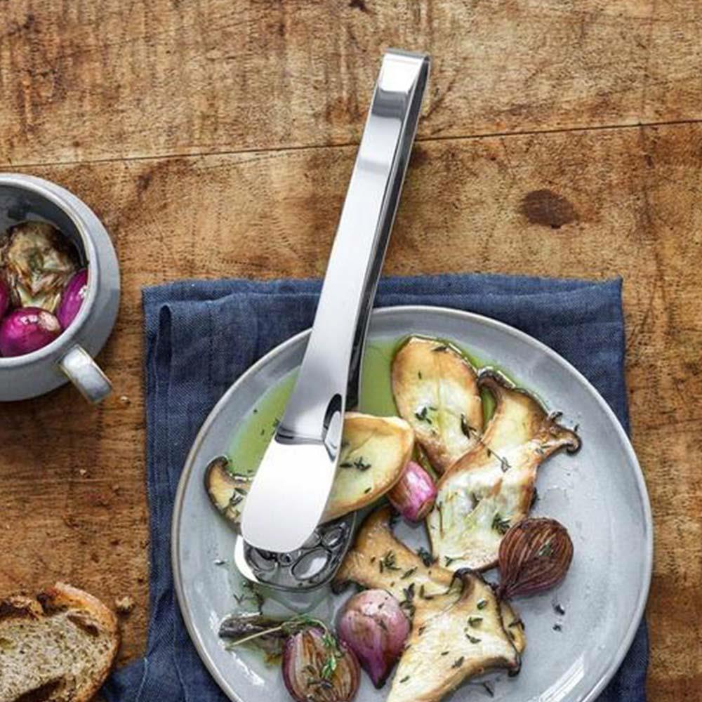25 cm uzunluğundaki bu etkileyici servis maşası, her tür leziz yiyeceği tutarken marinat, yağ ve fazla sıvıların alt kısımdan süzülmesine imkan tanır. Yüksek kaliteli Cromargan® 18/10 paslanmaz çelik malzeme kullanılarak ustalıkla üretilen maşa, etkileyiciliğinden asla ödün vermeyen zarif bir estetiğe ve olağanüstü dayanıklılığa sahiptir. WMF'nin ün saldığı becerileri ve teknik bilgileriyle üretilen bu benzersiz servis maşası bulaşık makinesinde yıkanabilir, bakımı kolaydır ve gıda asitlerine karşı dirençlidir.