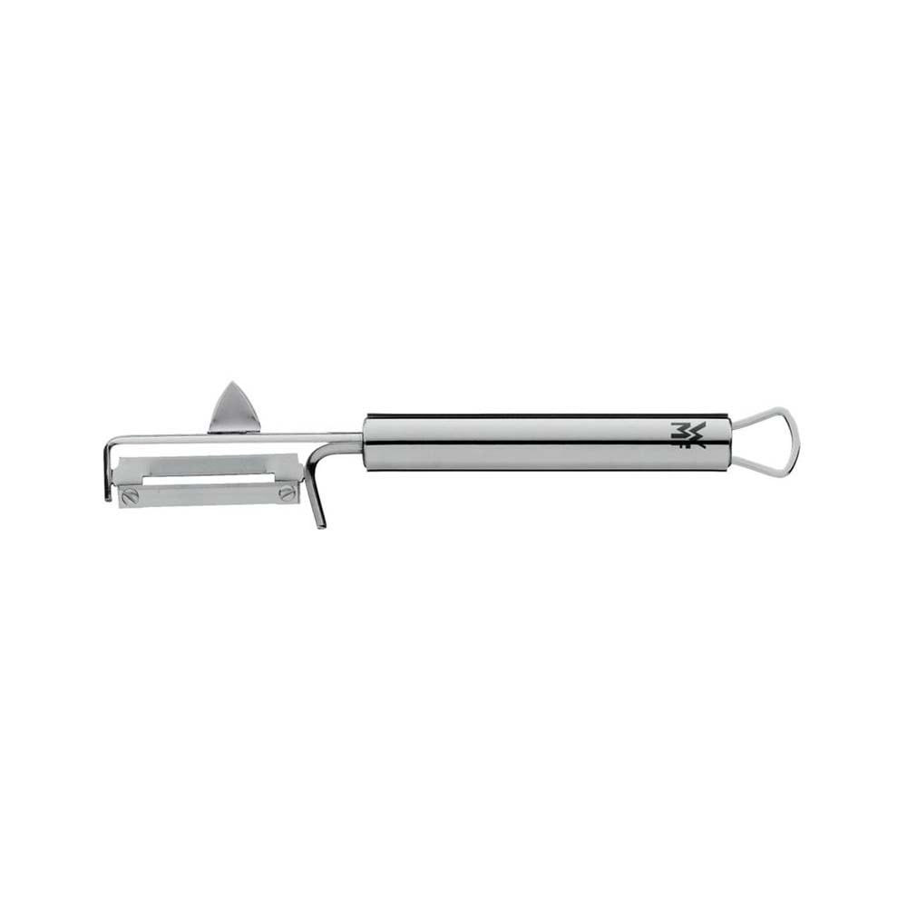 Kullanışlı WMF ince sebze soyacağı ile sebzeleri daha hızlı soyarsınız ve mutfağınızda daha az dağınıklık oluşur. Bu soyucu; domates, elma, salatalık, havuç veya kuşkonmaz gibi sebze ve meyvelerin kabuklarını en ince şekilde soyabilmenizi sağlar ve böylece kabukların hemen altındaki vitaminlerin soyularak kaybolmasını önler. Bıçağı hiç zorlanmadan kayarak kabuğu soyar, geride kir ve lekeli nokta bırakmaz.Bu çok yönlü mutfak aletinin bıçakları dayanıklı Cromargan® paslanmaz çelikten üretilmiştir ve çok çabuk temizlenir.